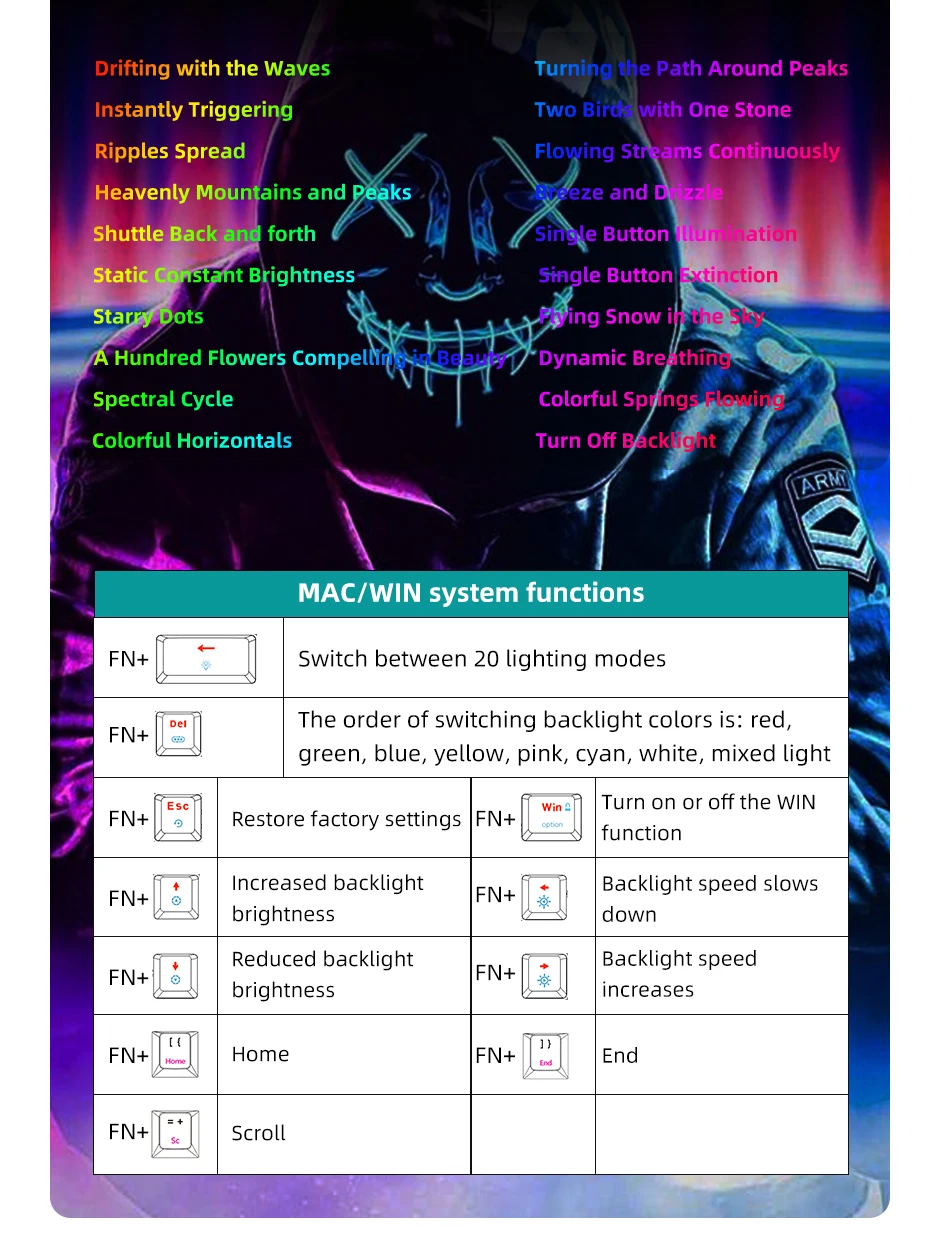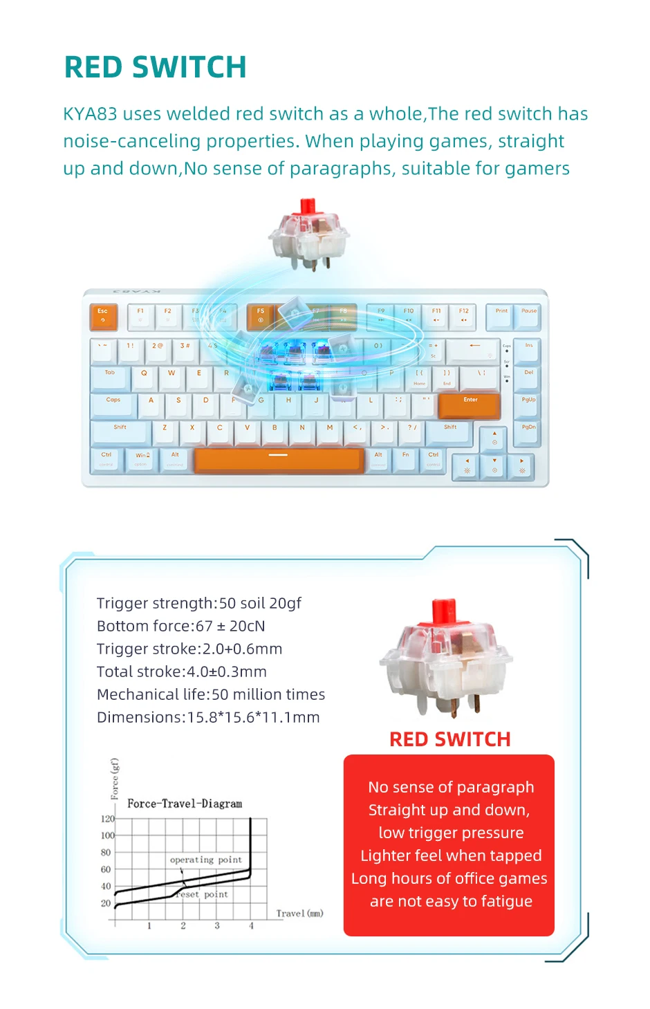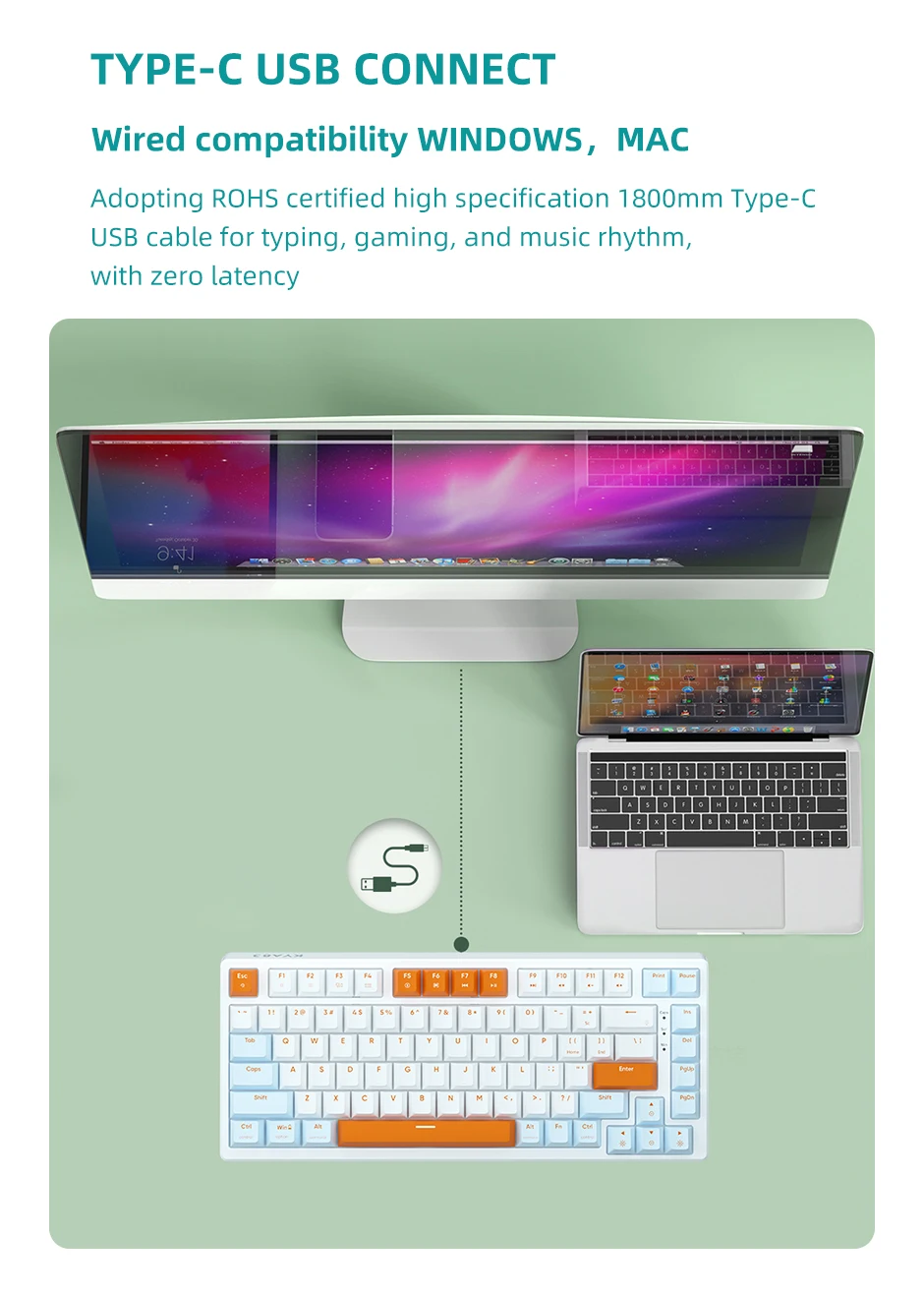 • 83 Llaves :Con 83 teclas, este teclado proporciona un amplio espacio para escribir y jugar, lo que lo hace ideal para la productividad y el entretenimiento.