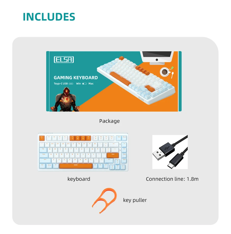 Comprar ELSA KYA83 interruptor rojo RGB USB Mini teclado mecánico con Cable para juegos, 83 teclas para ordenador, PC, portátil, Cable desmontable