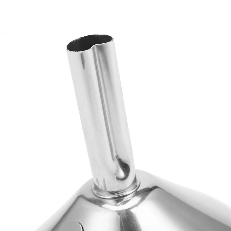 Este embudo está hecho de material de acero inoxidable plateado, con Boca Grande y diseño de punta.