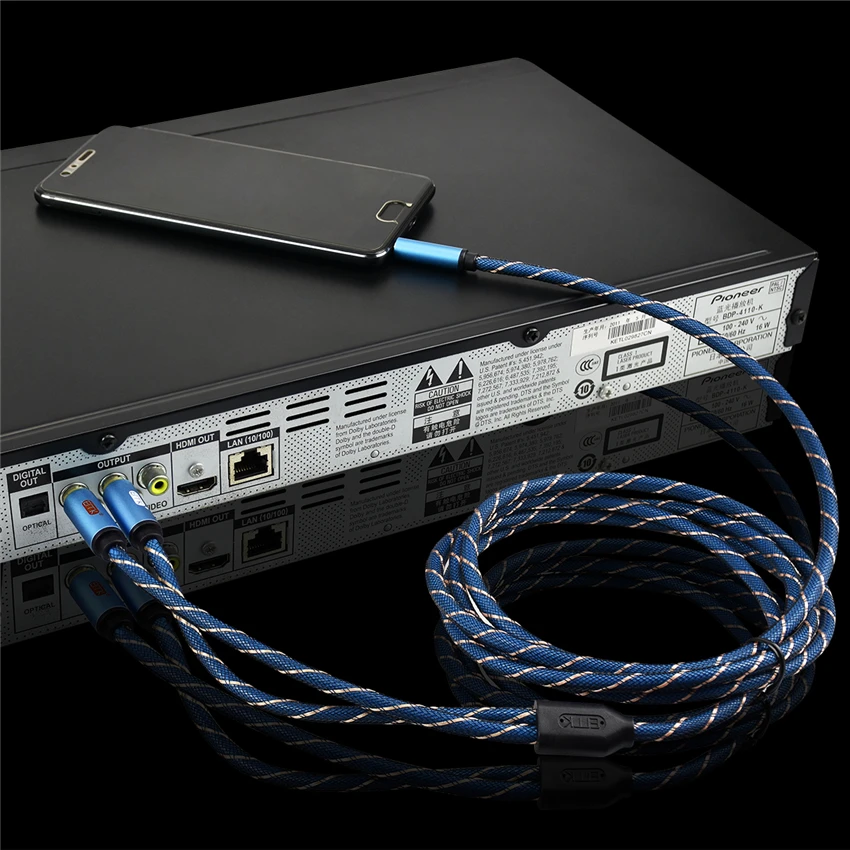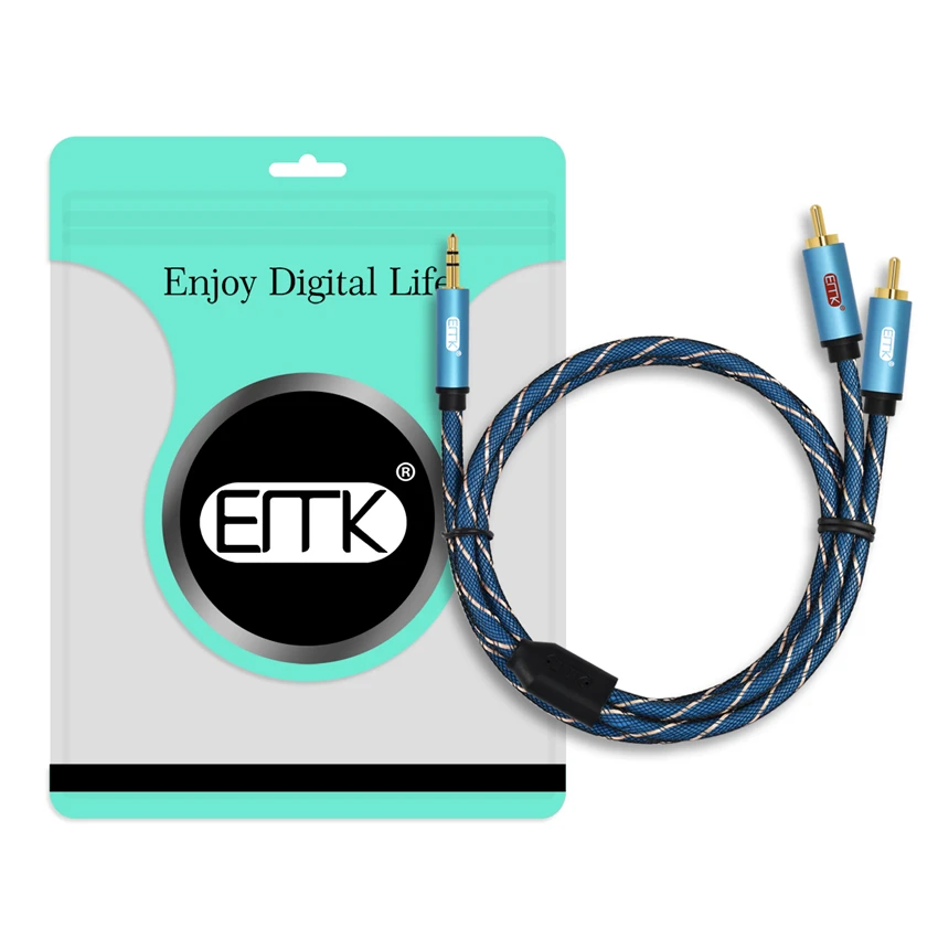 EMK-Cable de Audio de 3,5mm a 2RCA, conector RCA a 3,5 AUX, para DJ, amplificadores, Subwoofer, mezclador de Audio, cine en casa, DVD