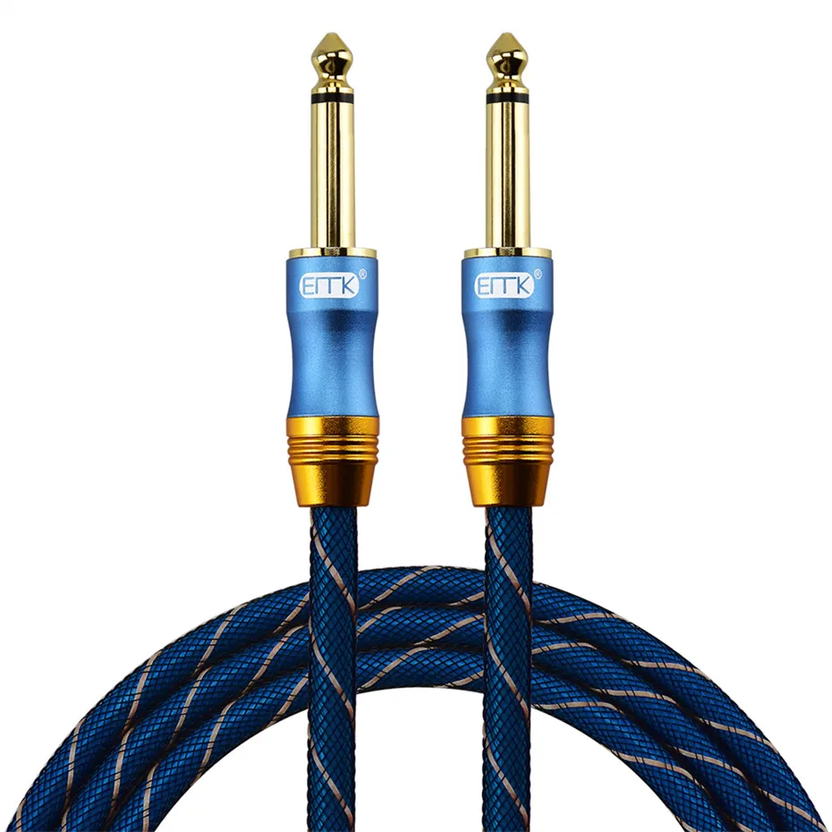 Comprar EMK-Cable de nailon trenzado para amplificador de mezclador, Cable Jack Mono de 6,35, 6,3, 6,5mm, macho a macho, 1m, 5m, 10m, 15m