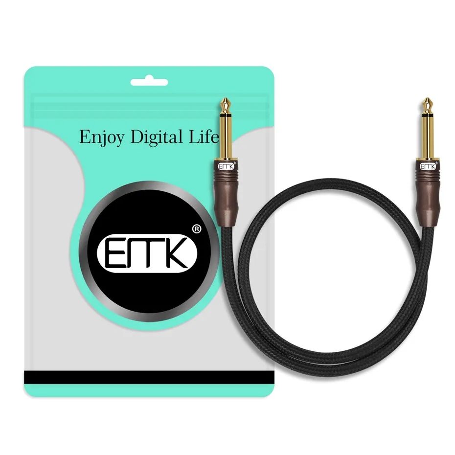 EMK 6,35 Jack Mono Cable 6,3 a 6,5 Jack Cable de Nylon trenzado de Jack de 6,35mm macho a macho Cable 1m 5m 10m 15m para amplificador Mezclador