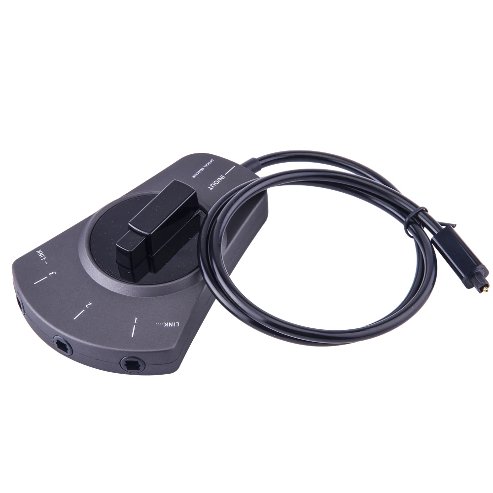 - Conmutación de audio digital Toslink de fibra óptica de 3 entradas