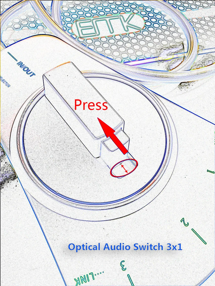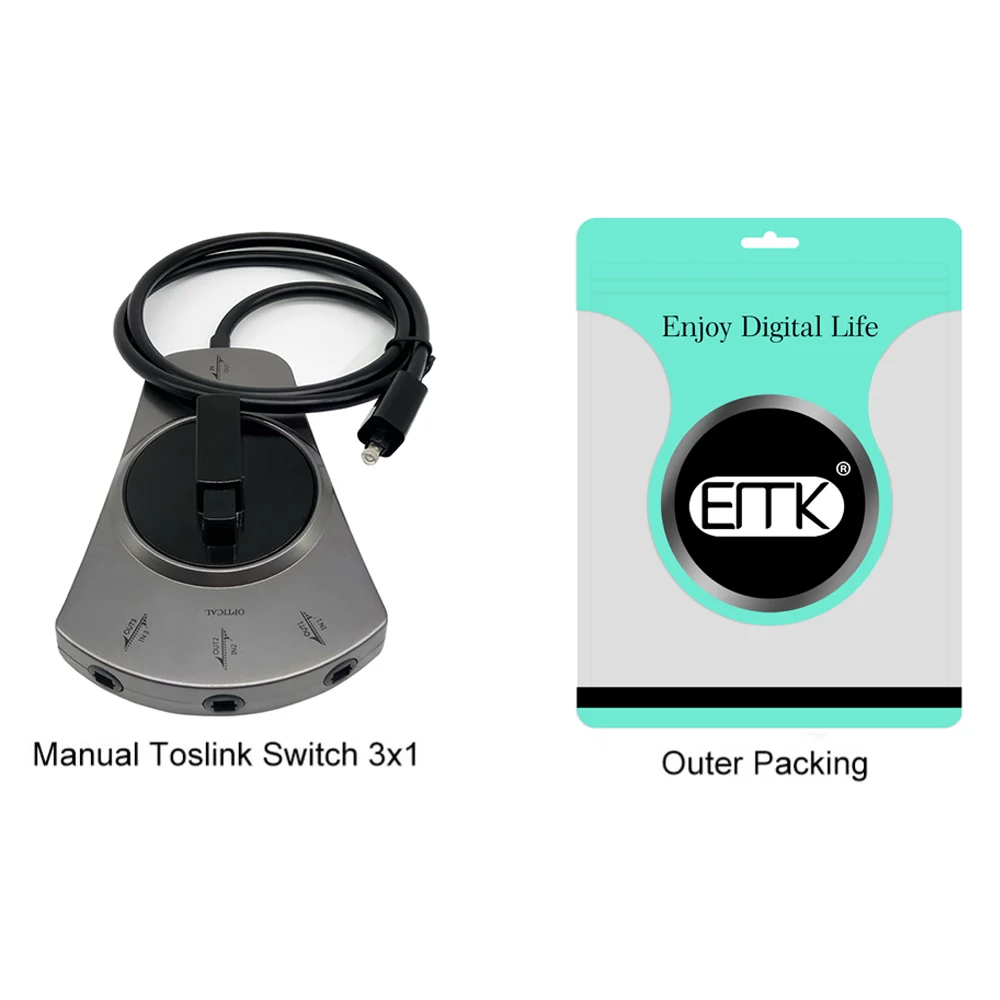 EMK 3x1 Audio óptico de 3 vías Interruptor manual bidireccional toslink