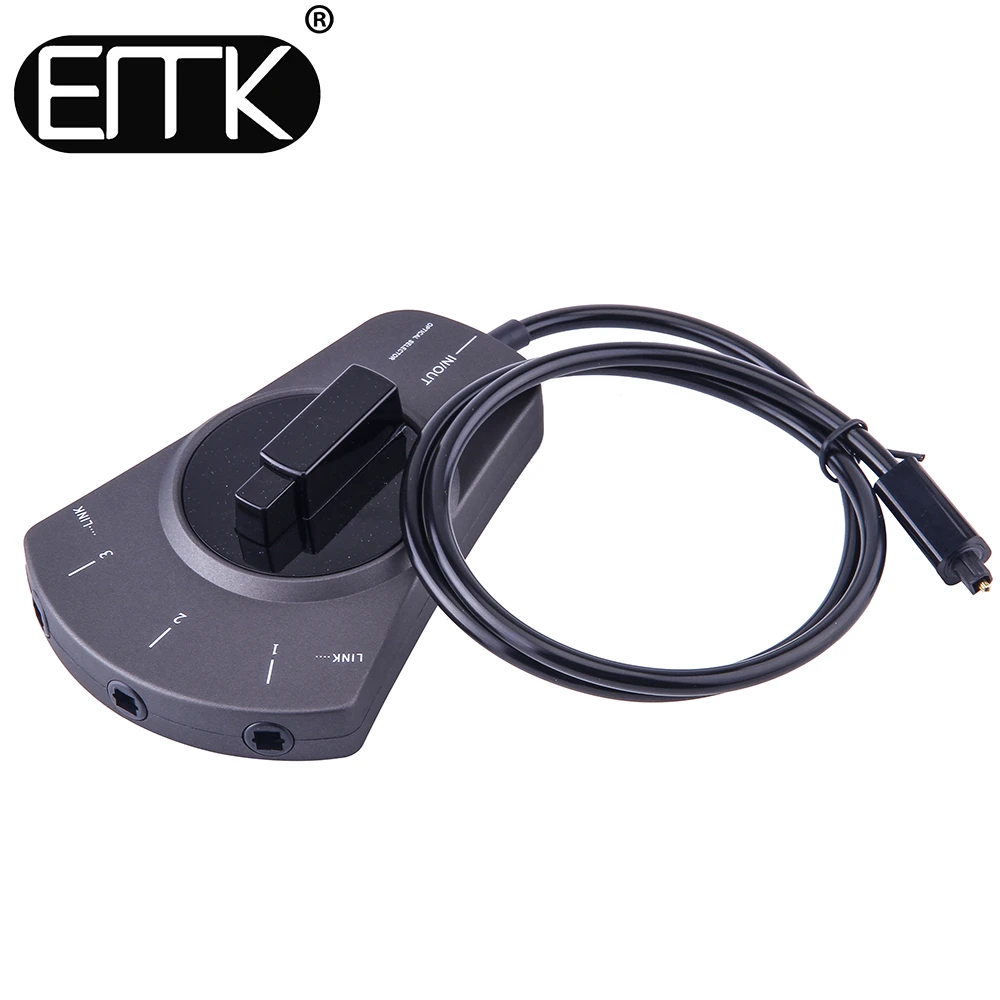 Comprar EMK-interruptor Toslink Digital de 3 vías, interruptor de Audio óptico SPDIF, Cable Toslink, Selector, caja Hub para reproductor de CD y DVD