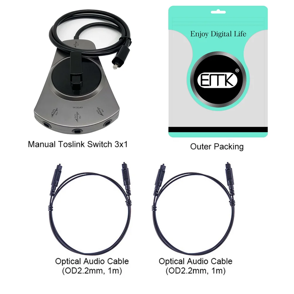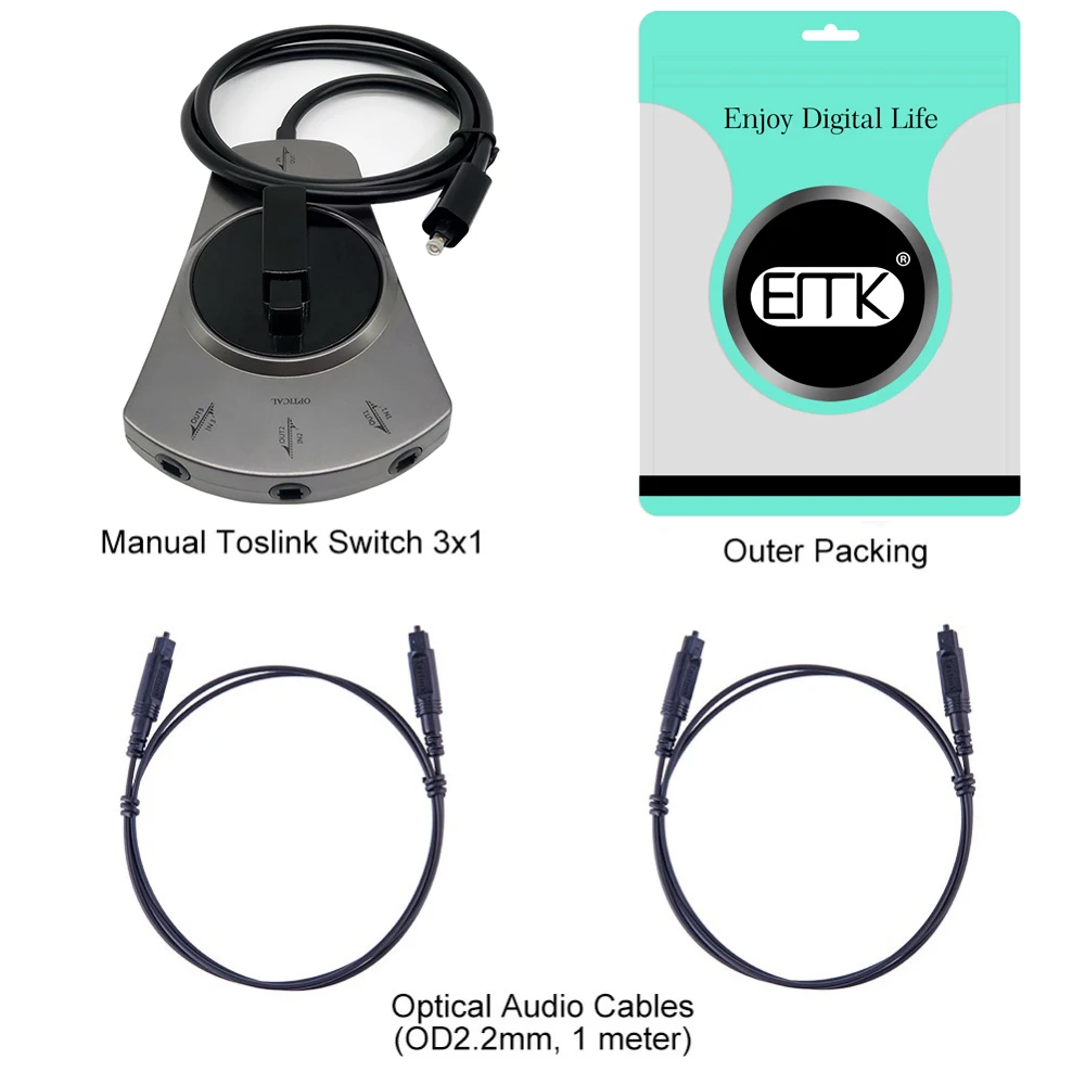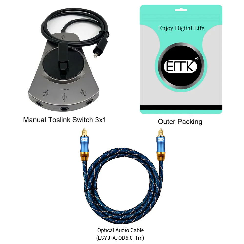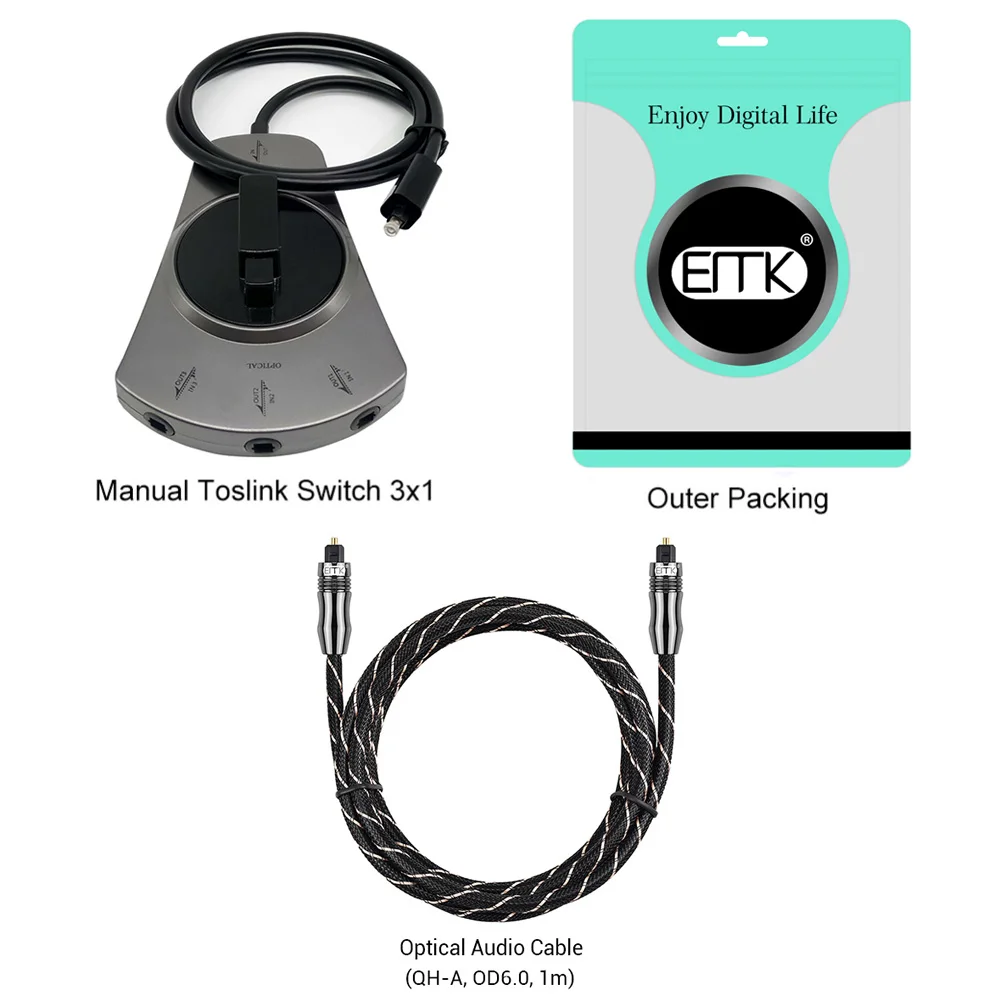 EMK-interruptor Toslink Digital de 3 vías, interruptor de Audio óptico SPDIF, Cable Toslink, selector, caja de concentrador para reproductor de CD y DVD