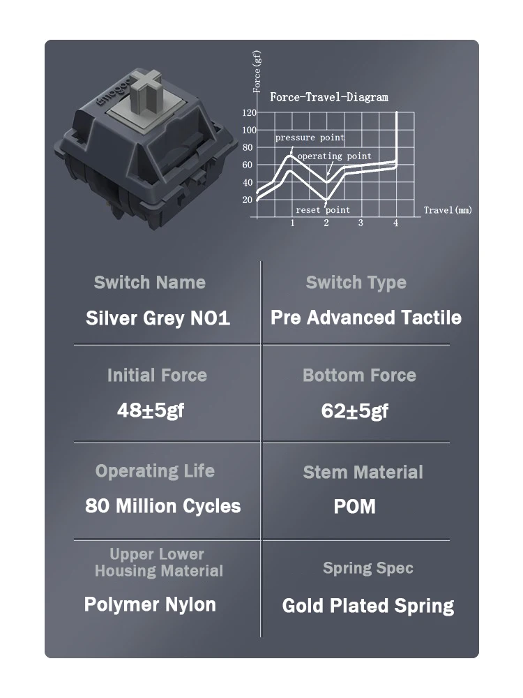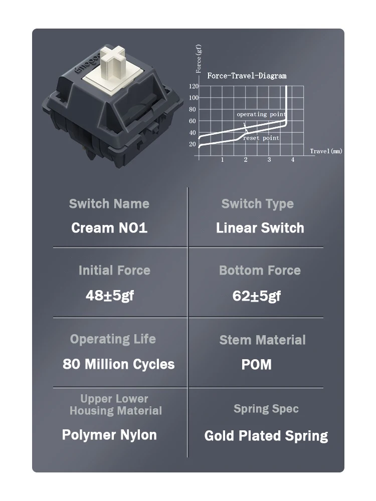 Comprar Emogogo Cream NO1 interruptor lineal gris plateado NO1 interruptor pretáctil 5 pines RGB SMD 62g Mx interruptor para teclado mecánico