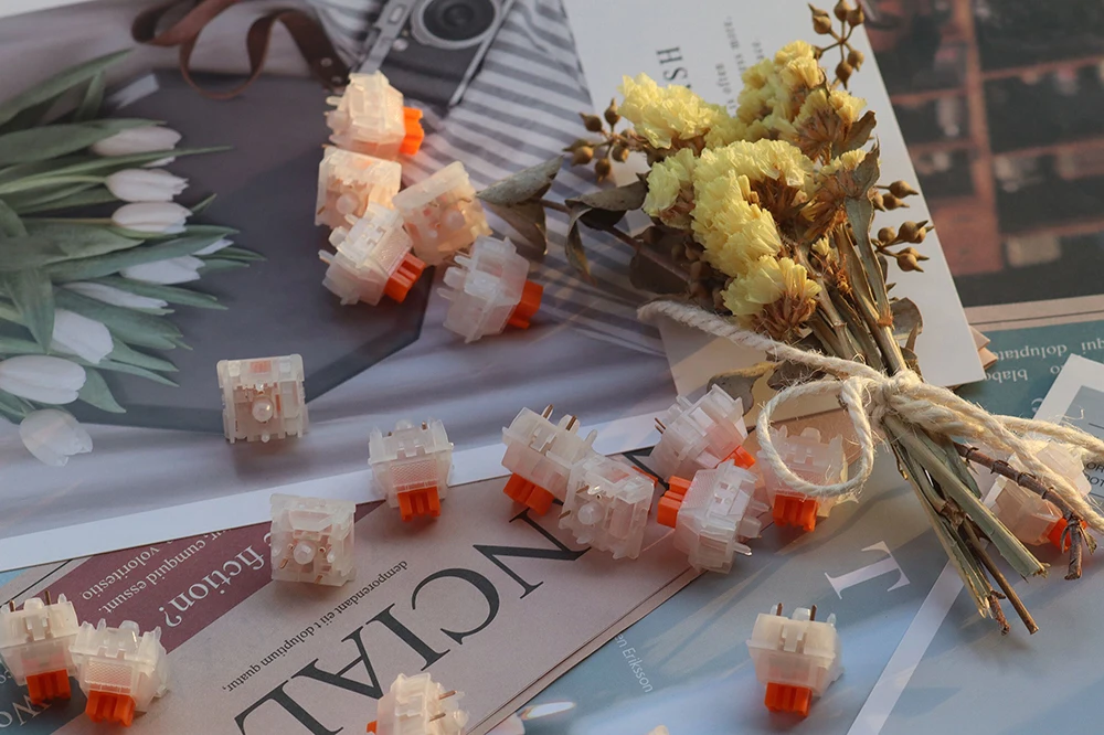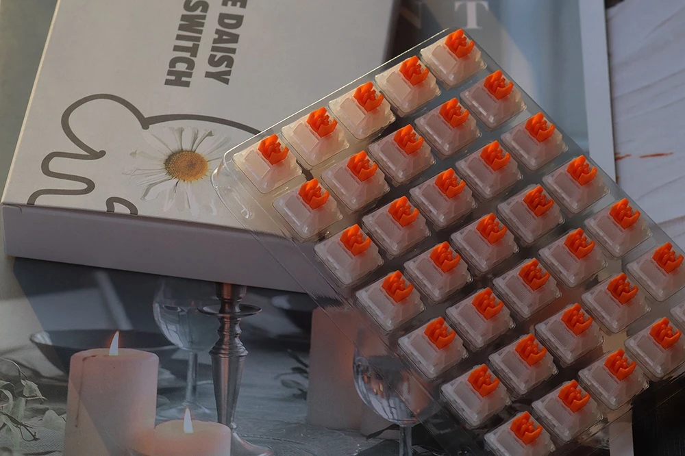 Comprar Emotoys-interruptor lineal para teclado mecánico, pulsador pequeño de margaritas, 65g, mx, 50m, de fábrica, PC, POM, chapado en oro