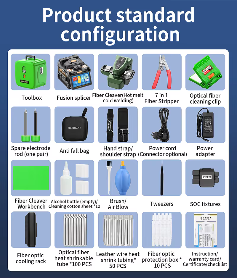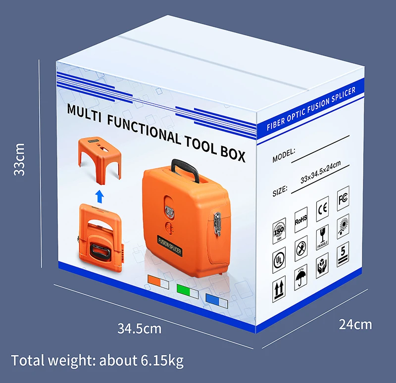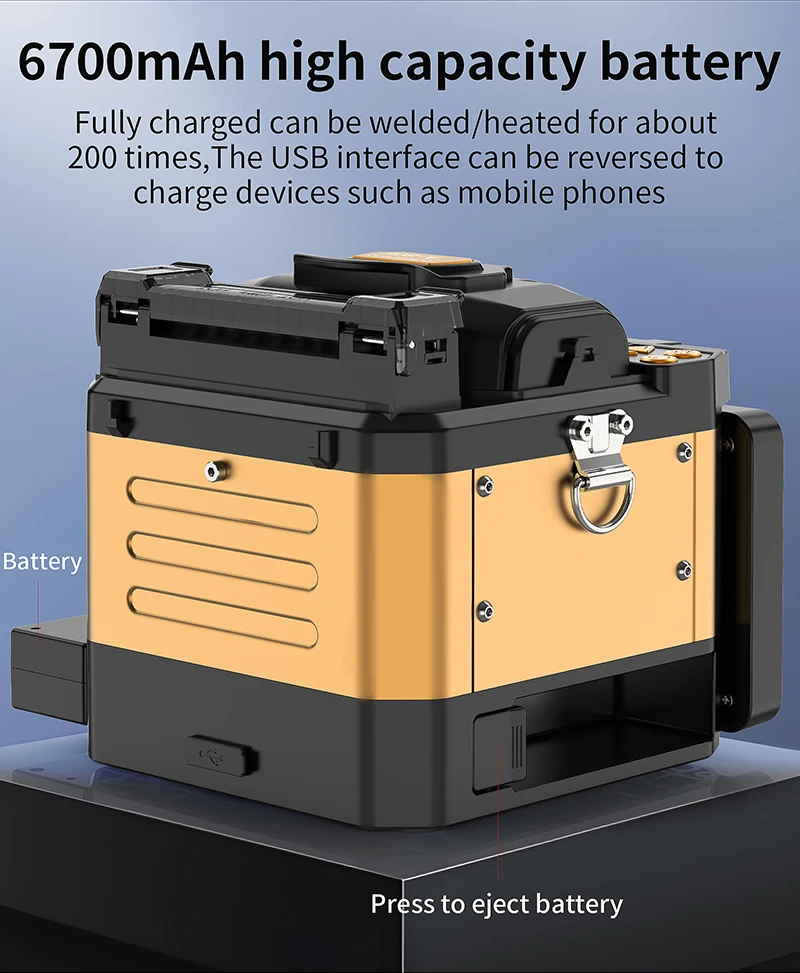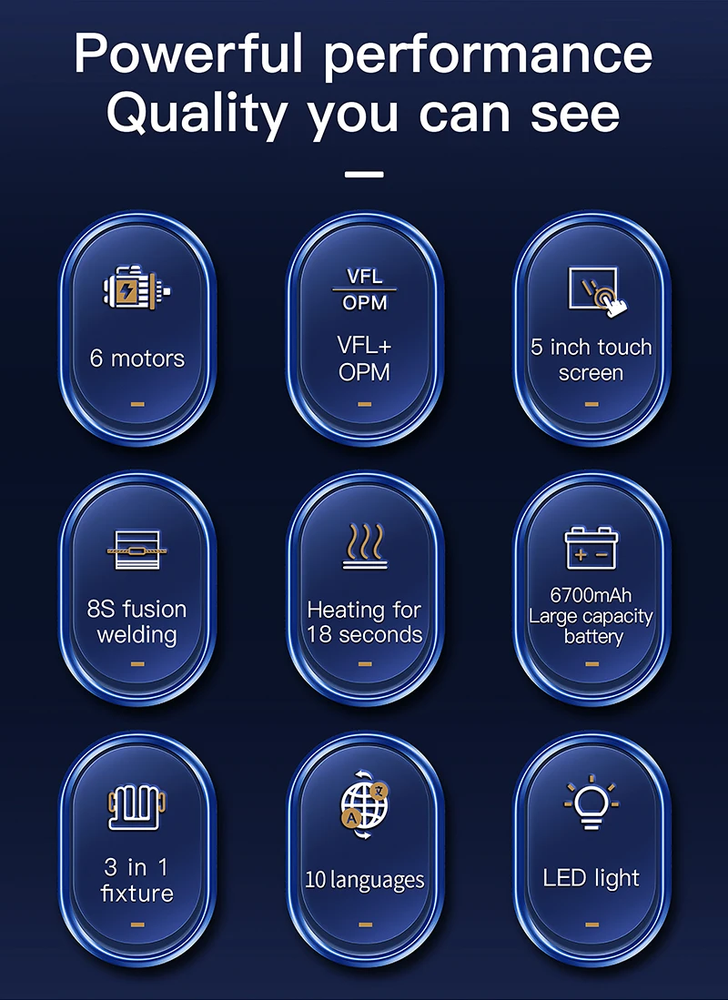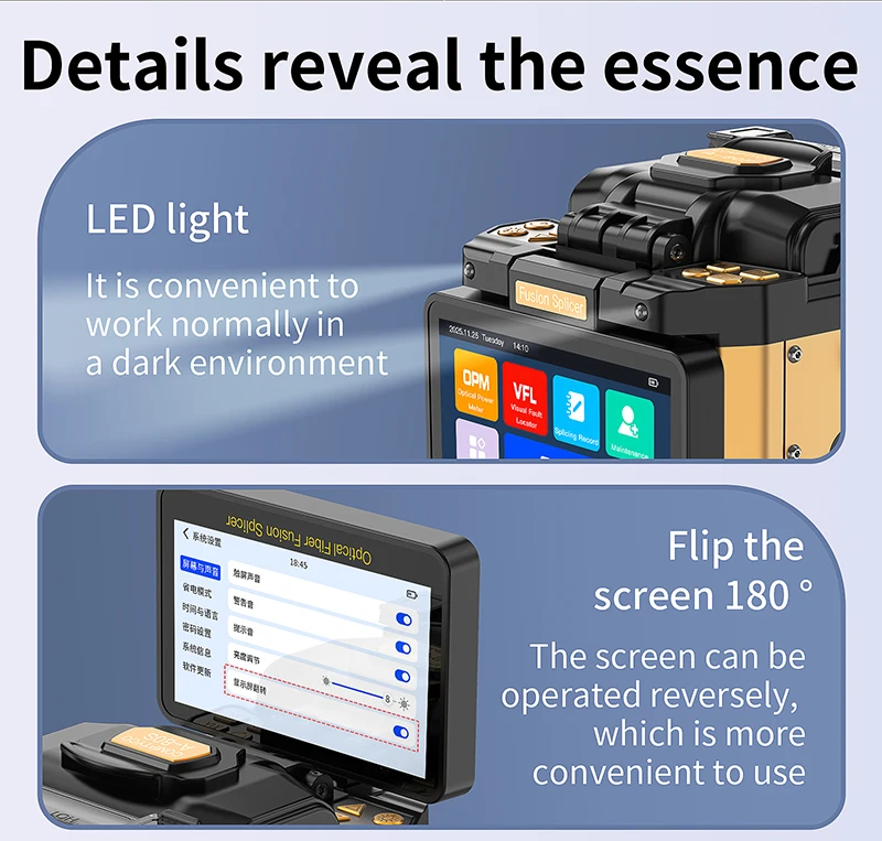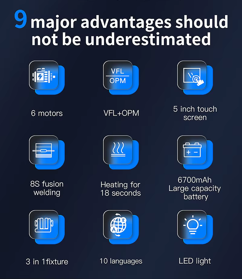 Empalmador de fibra Fuison totalmente automático, 6 motores, A-80F/A-10, pantalla táctil multilingüe, máquina de fusión en caliente de fibra óptica, VFL OPM integrada