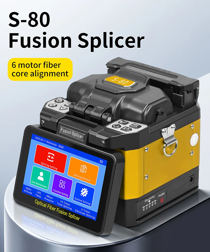 Empalmador de fusión de fibra óptica S-80/A-88S/FS-60E/A-88S seis motores multilingüe SM/MM máquina de soldadura de núcleo de fibra óptica pantalla táctil