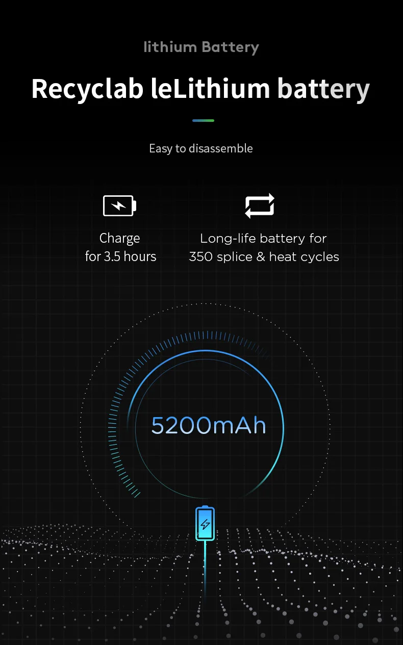 Capacidad de la batería de 5200mAh. Soldadura circular 350 veces