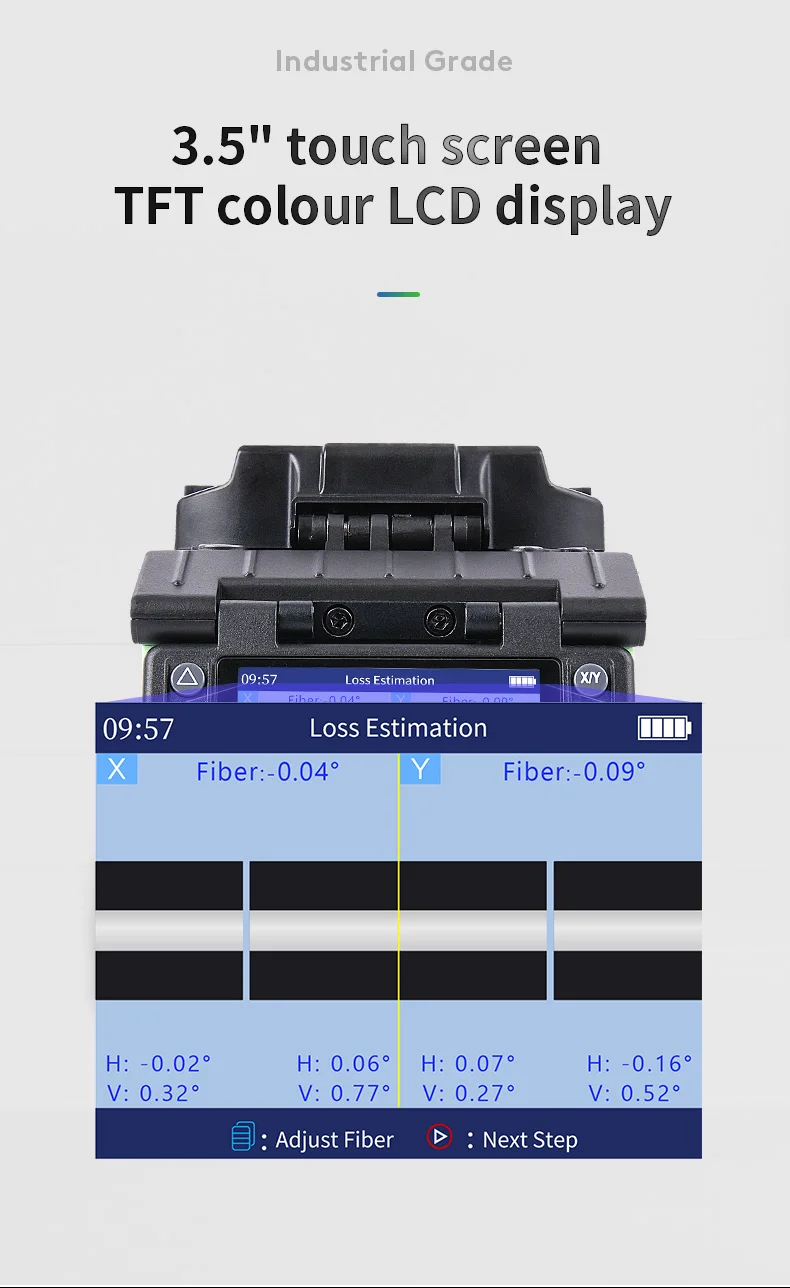 Corrección de descarga en tiempo real. Empalme de fibra estable