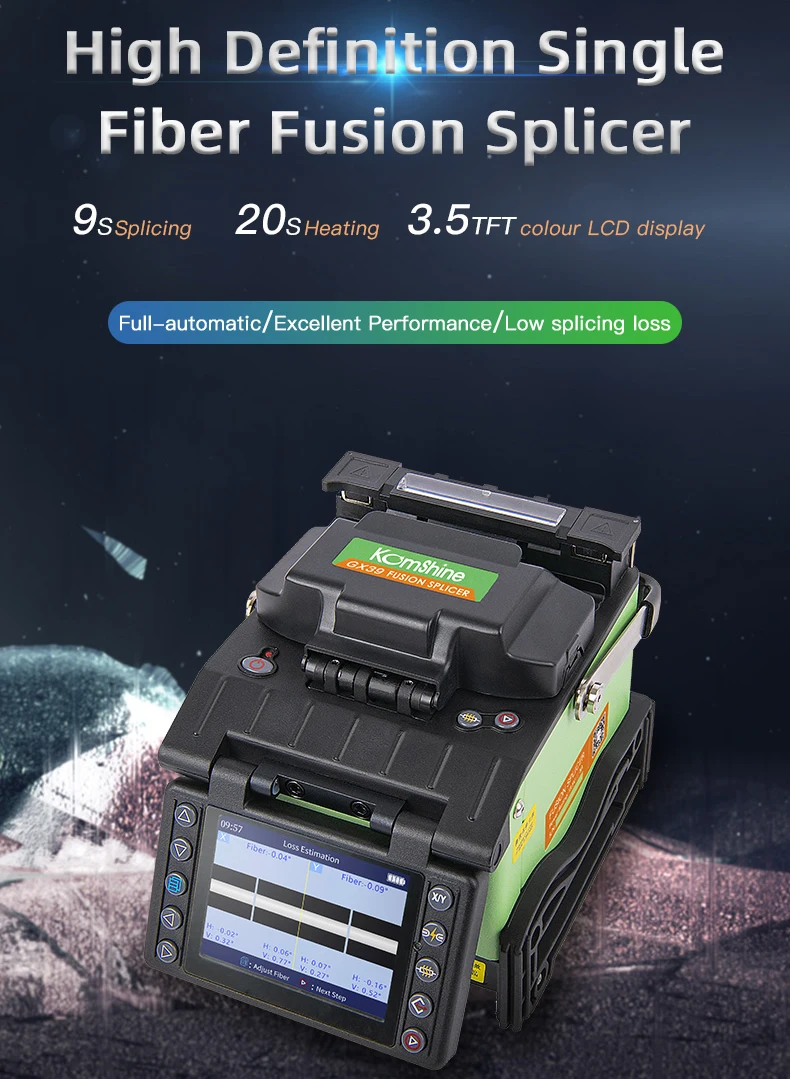 Comprar Empalmador de fusión de fibra única de alta definición Komshine GX39 ftth, máquina de empalme de fibra optica con cuchilla de fibra óptica de TFC-30