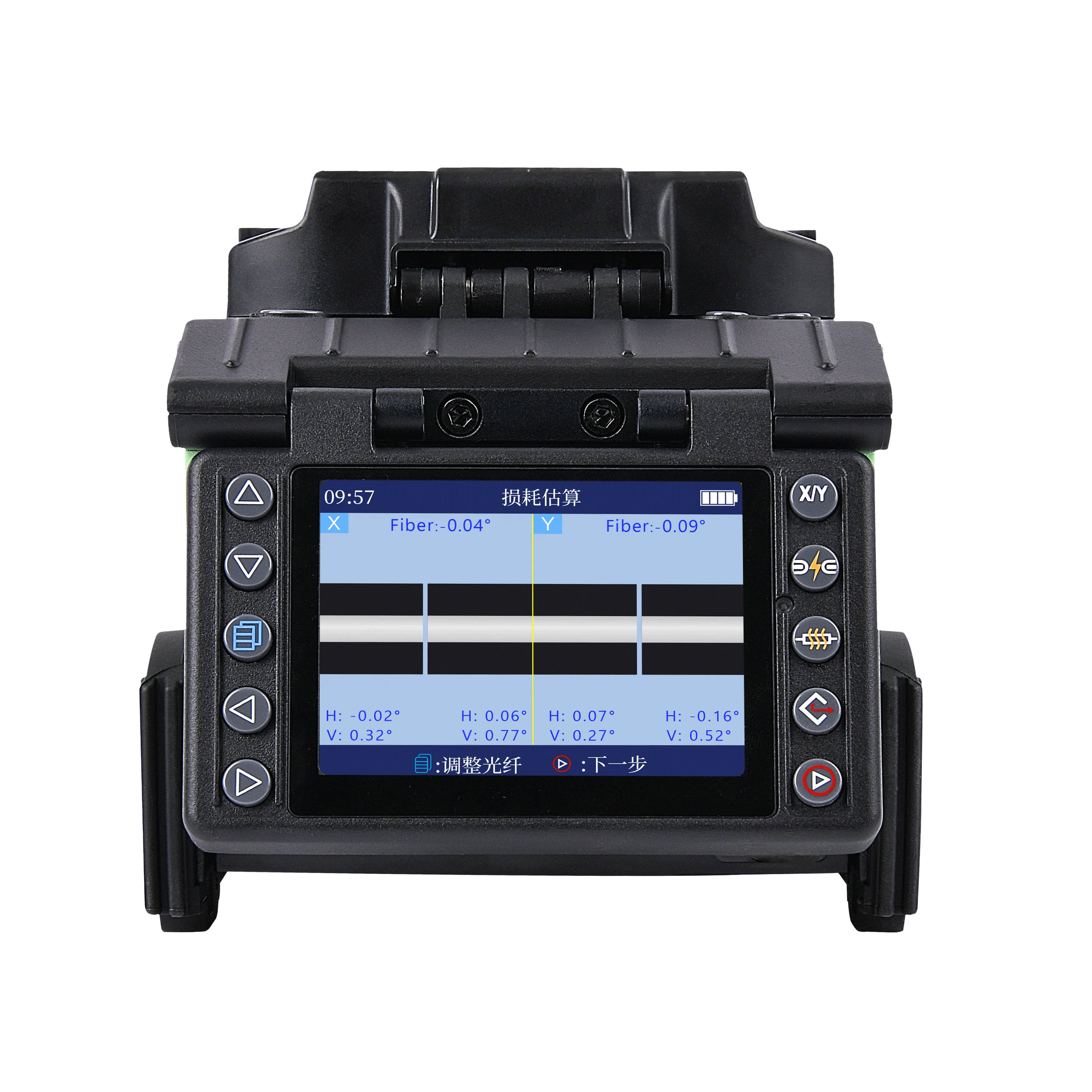 Corrección de descarga en tiempo real. Empalme de fibra estable