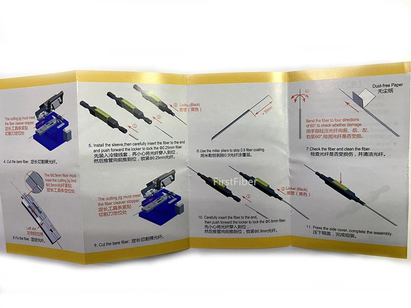3, cable óptico aplicable: adecuado para cualquier combinación de fibra óptica de 0,25mm y fibra óptica de 0,9mm.