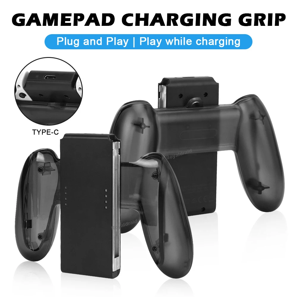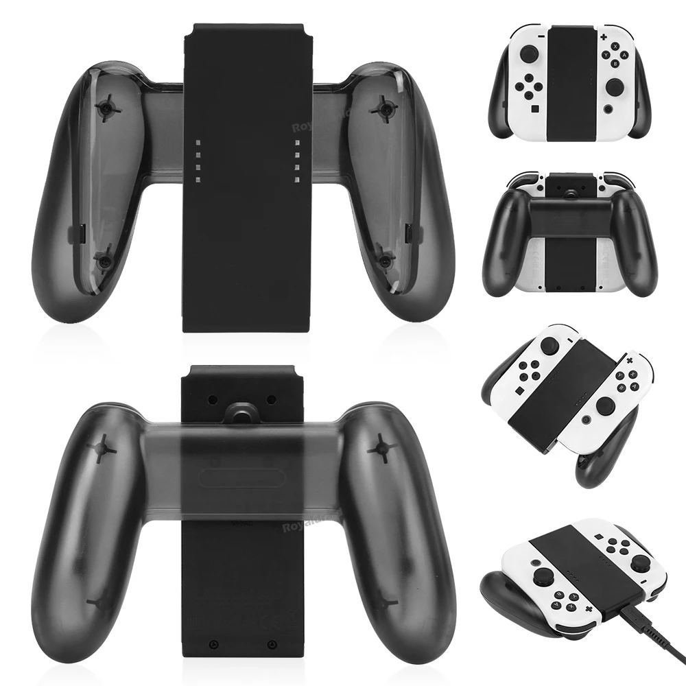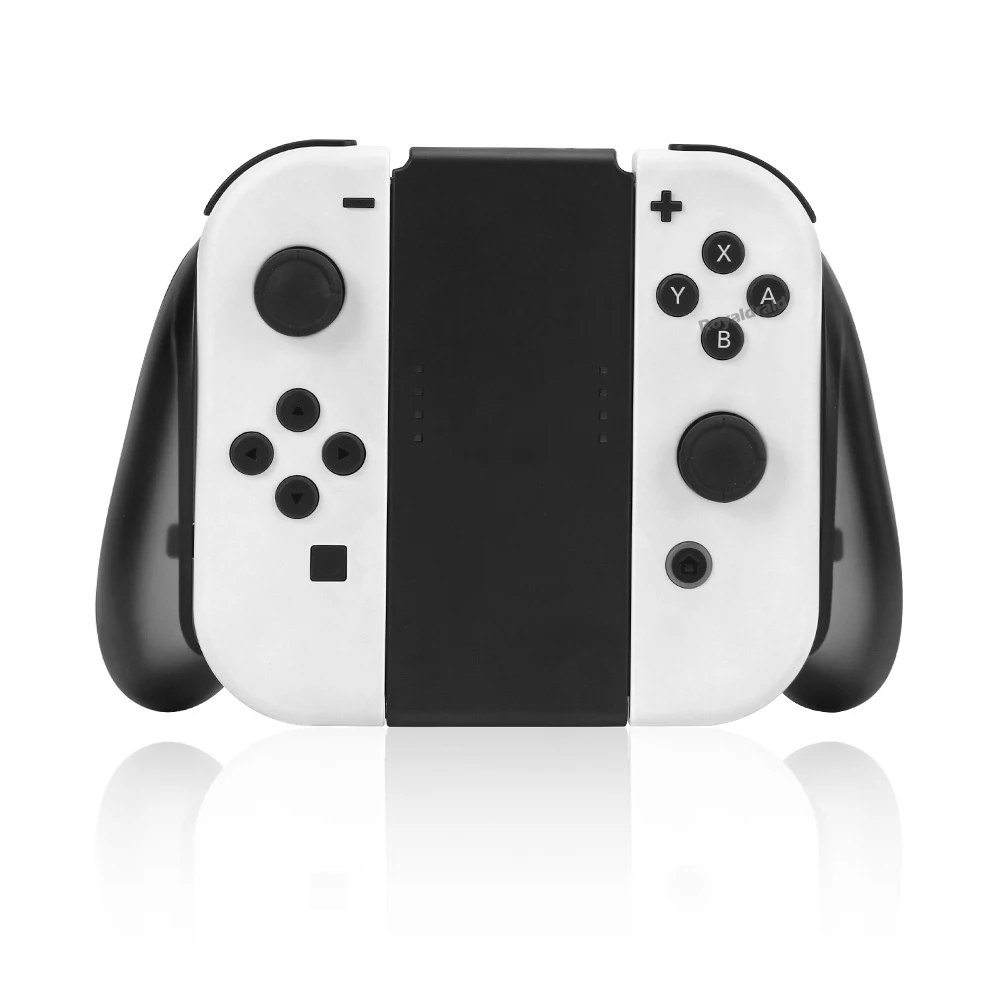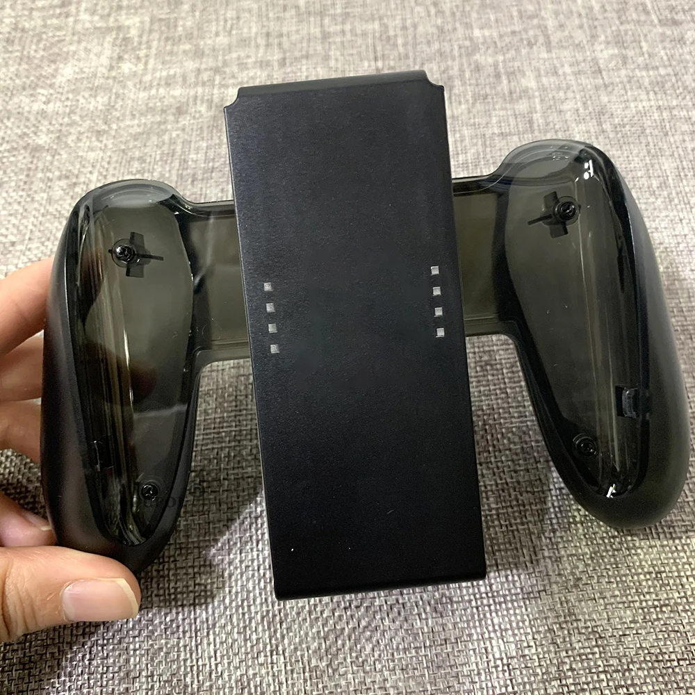 Grip para joycon con función de carga integrada similar al original pero sin espejos que reflejan el nivel de carga de los joycons, es un buen sustituto con algunos defectos estéticos en el material pero no está mal si no te importa y cumple su función