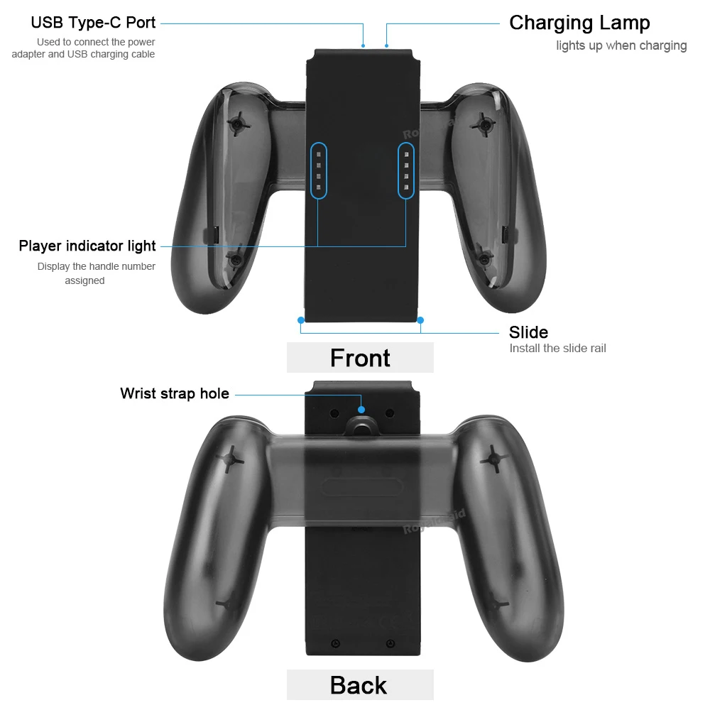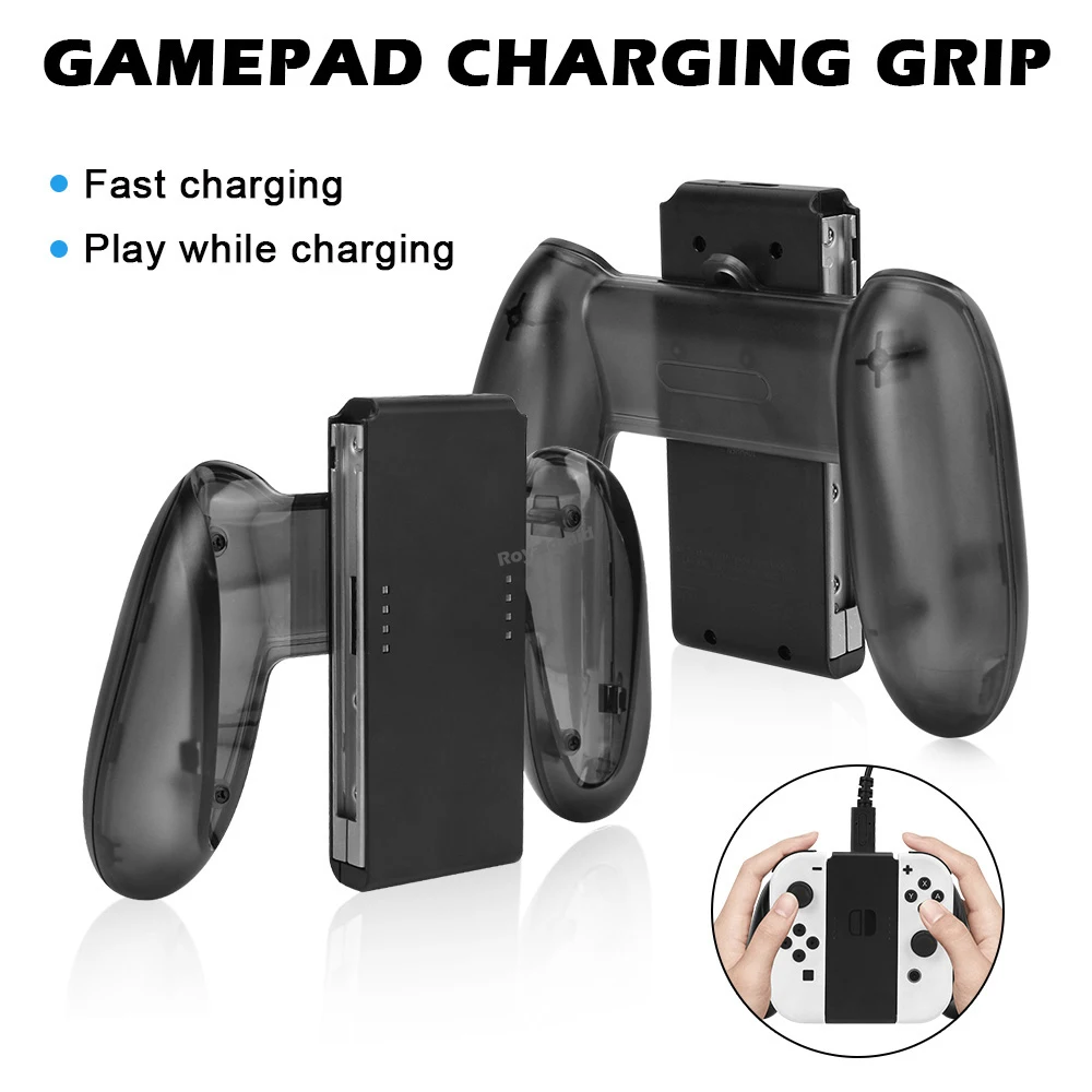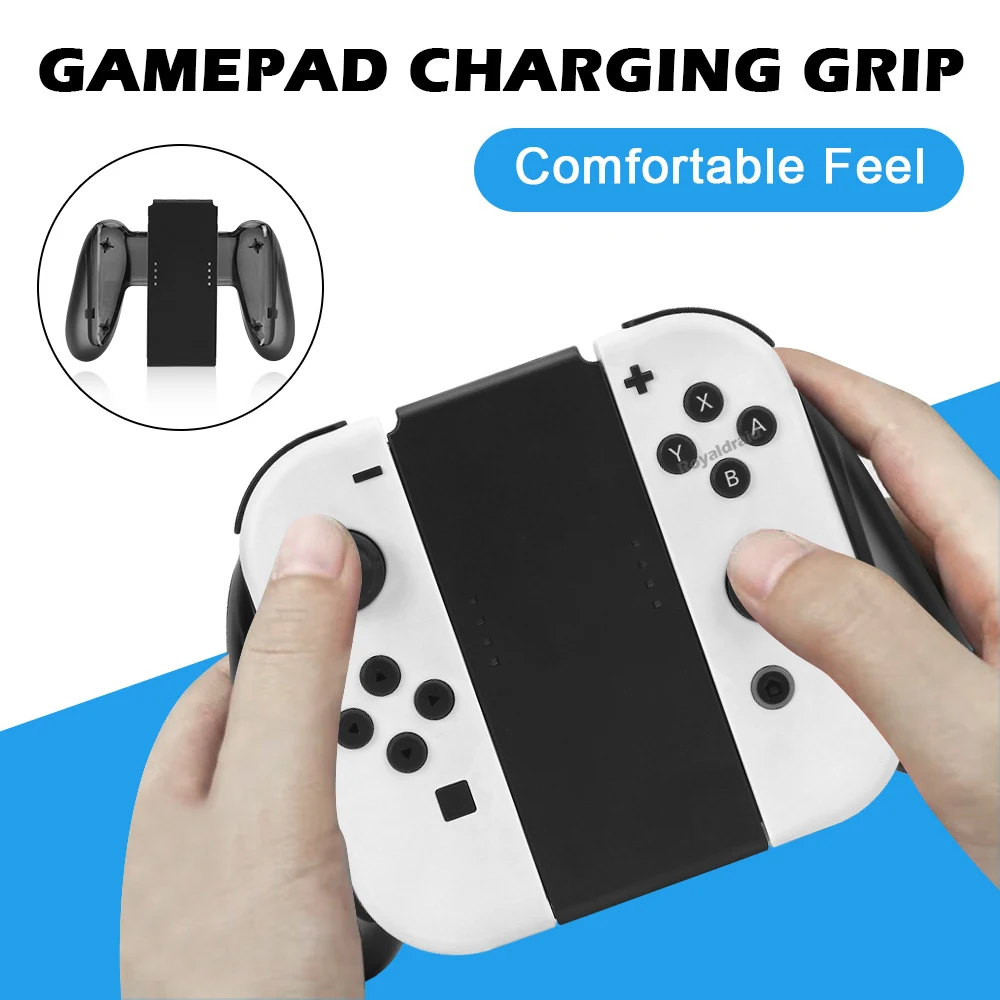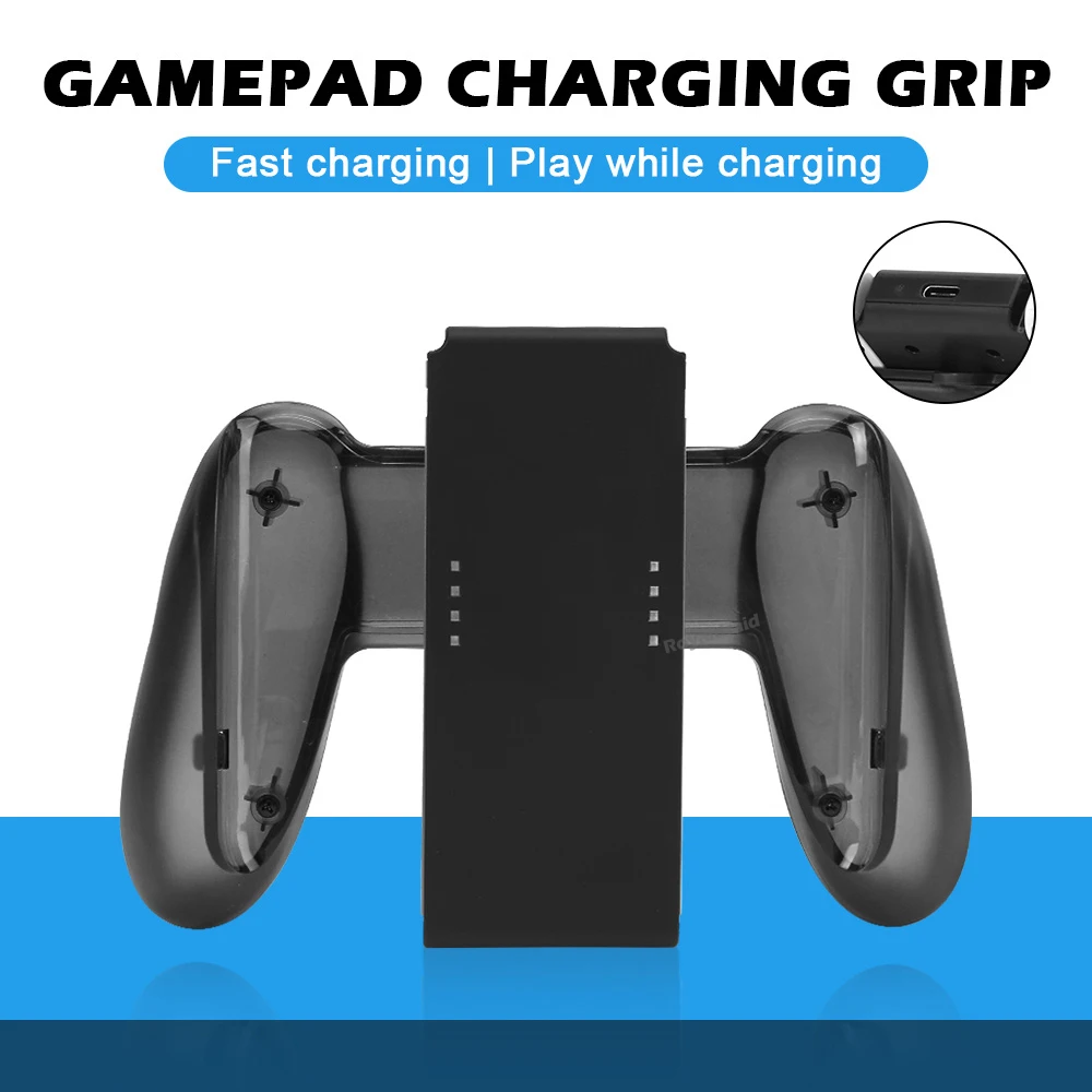 Grip para joycon con función de carga integrada similar al original pero sin espejos que reflejan el nivel de carga de los joycons, es un buen sustituto con algunos defectos estéticos en el material pero no está mal si no te importa y cumple su función