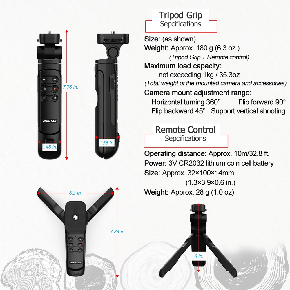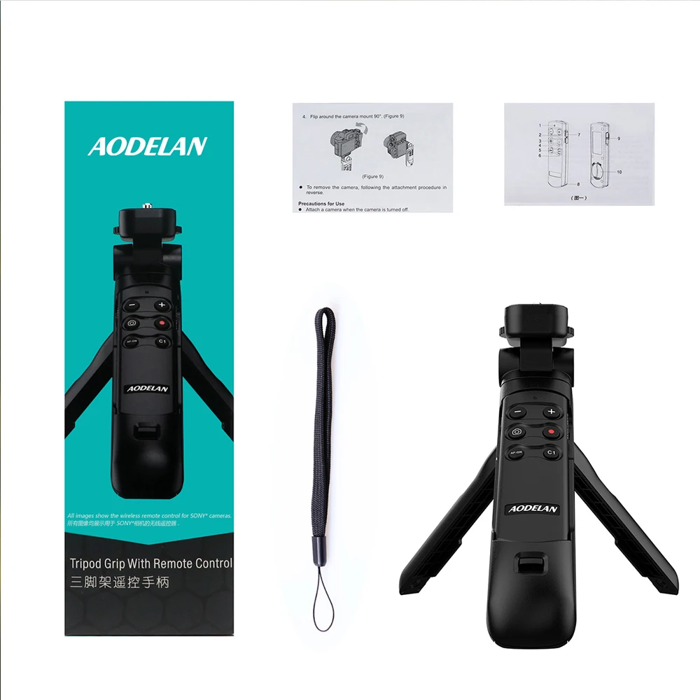 La empuñadura de trípode AODELAN con mando a distancia es una empuñadura que le permite disparar mientras opera la cámara con el mando a distancia inalámbrico. Las patas también se pueden extender desde la parte de agarre para usar como trípode.