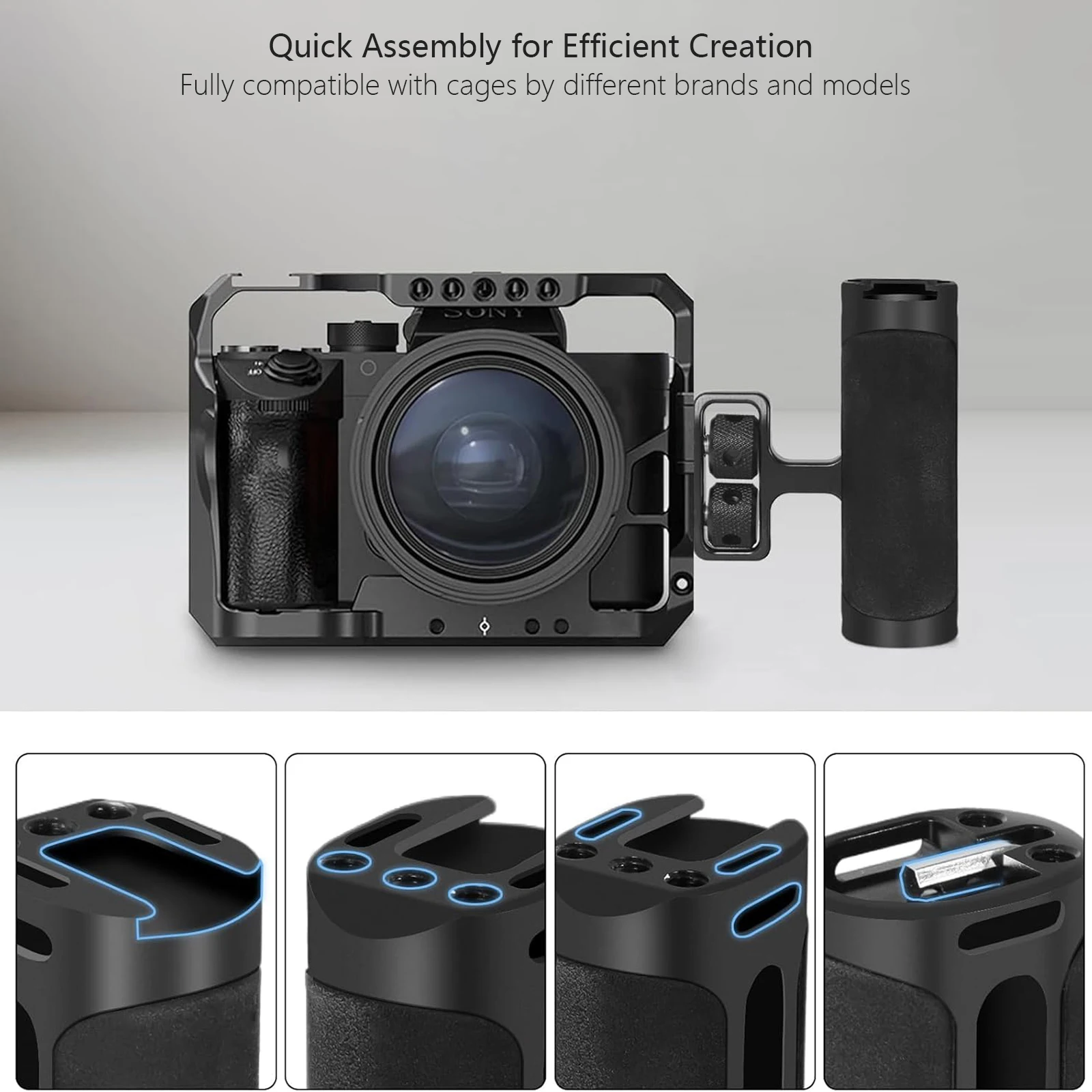 2. Empuñadura izquierda derecha: esta manija con una apariencia cómoda se puede conectar a la jaula de su cámara izquierda o derecha.