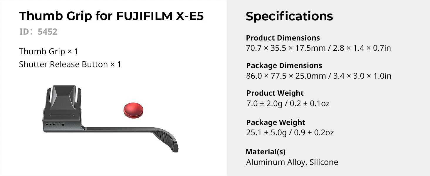 SmallRig Thumb Grip for FUJIFILM X-E5Key Features
