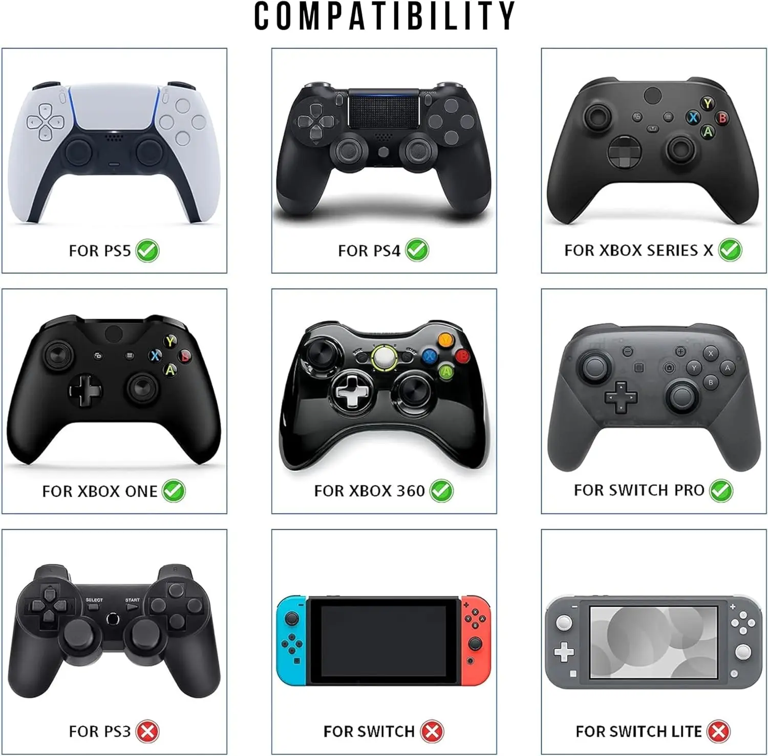 Compatibilidad: se adapta a PS5, PS4, Xbox Series X, Xbox One, controlador switch Pro, pero NO a la consola Nintendo Switch Joy-con o Switch Lite.