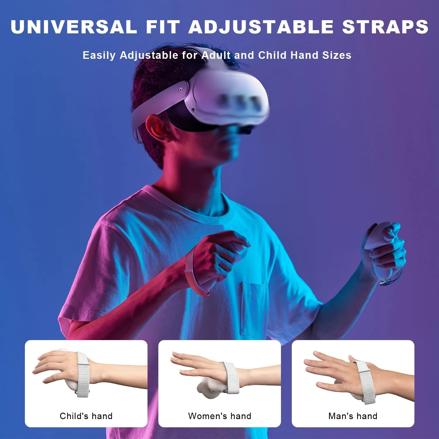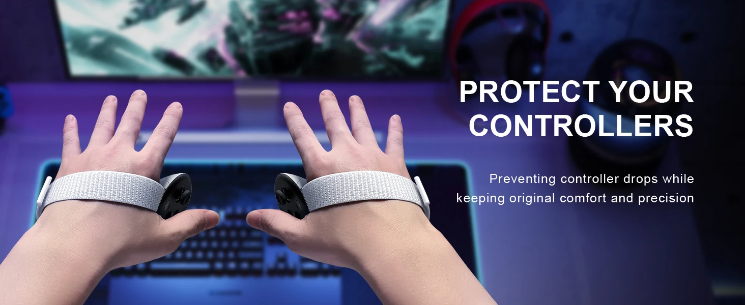 👨👩👧👦【Adecuado para todas las manos】👨👩👧👦La adhesividad del velcro ha sido probada miles de veces y permanece como nueva, fácil de ajustar y adecuada para manos grandes, medianas y pequeñas, ya sea un adulto o un niño.Diseñado ergonómicamente para un agarre seguro incluso con las manos sudorosas.Ya sea balanceándose con fuerza en juegos de realidad virtual o disparando con precisión, puede mantener un control y precisión estables.