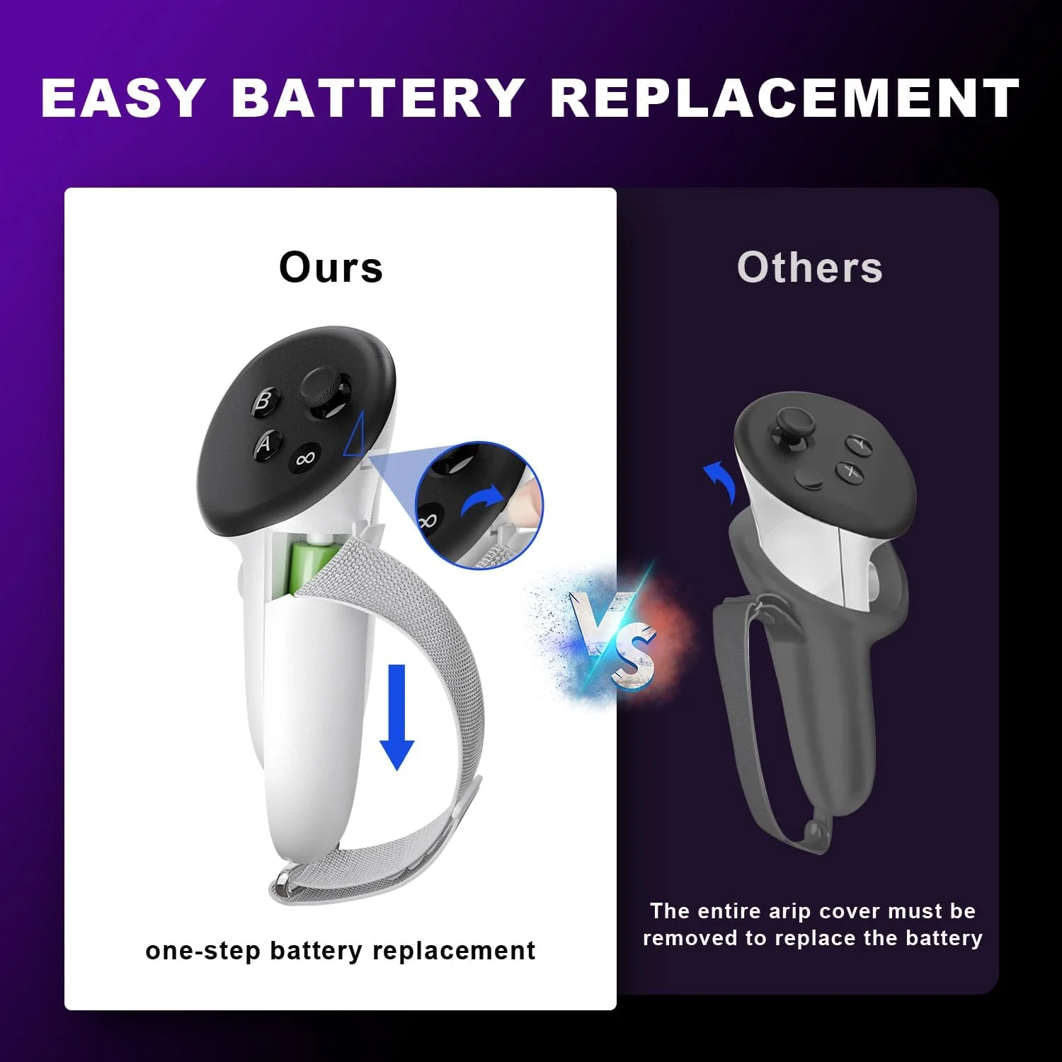 ✅ 【Batería de instalación rápida y fácil de reemplazar】 ✅ Las cubiertas de agarre del controlador ofrecen una instalación rápida en 10 segundos que es sencilla y fácil de usar, lo que permite a los principiantes comenzar fácilmente sin necesidad de herramientas complejas. El reemplazo de la batería es igual de sencillo; presione el botón triangular para abrir la cubierta, no es necesario quitar la correa de nailon y simplemente deslícela en la ranura del controlador para cerrarla.