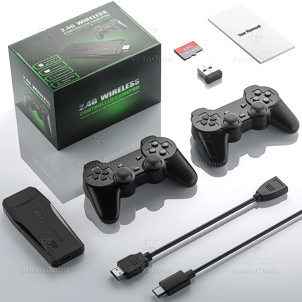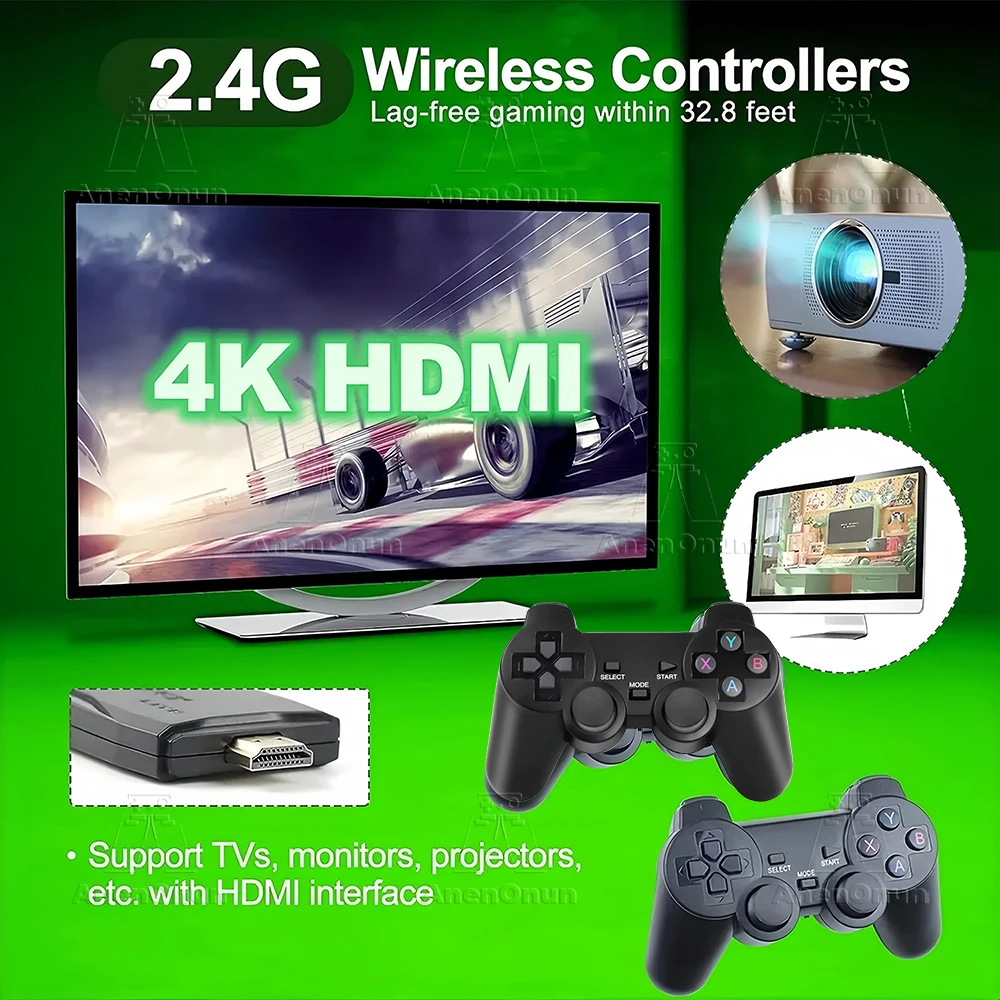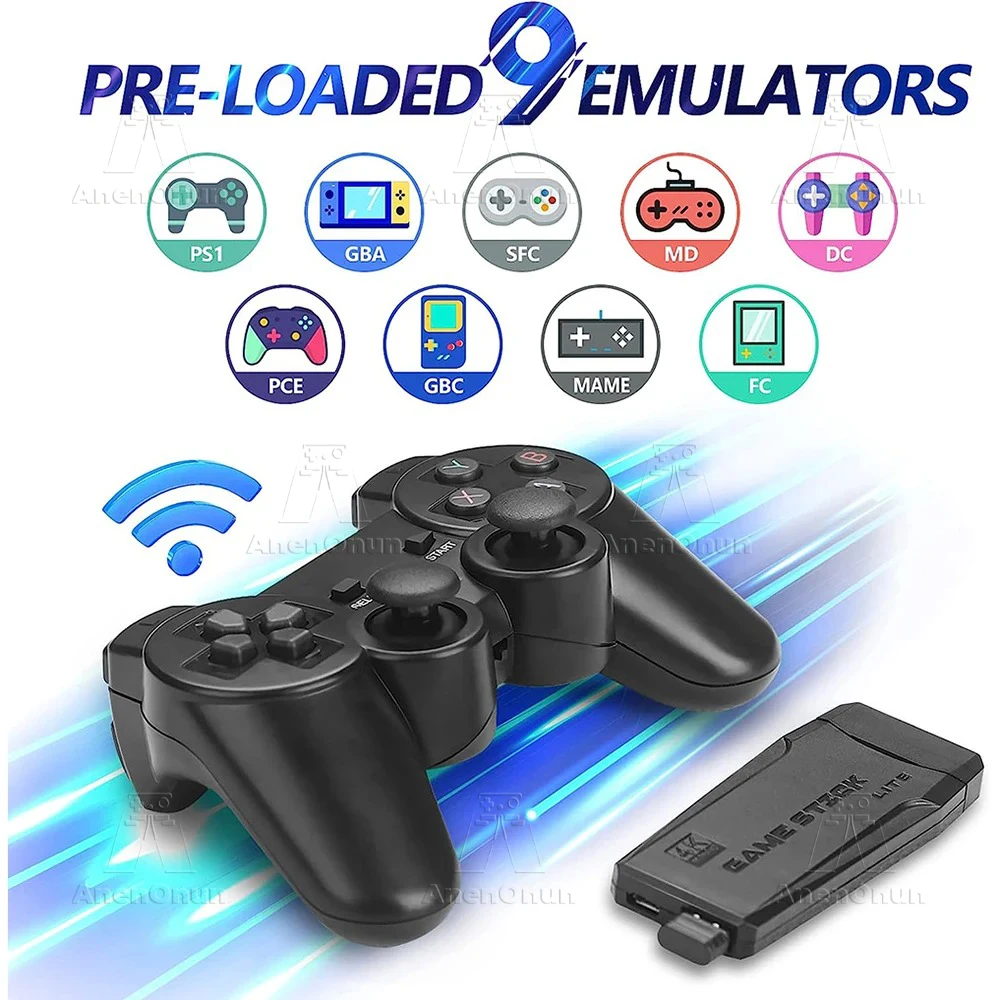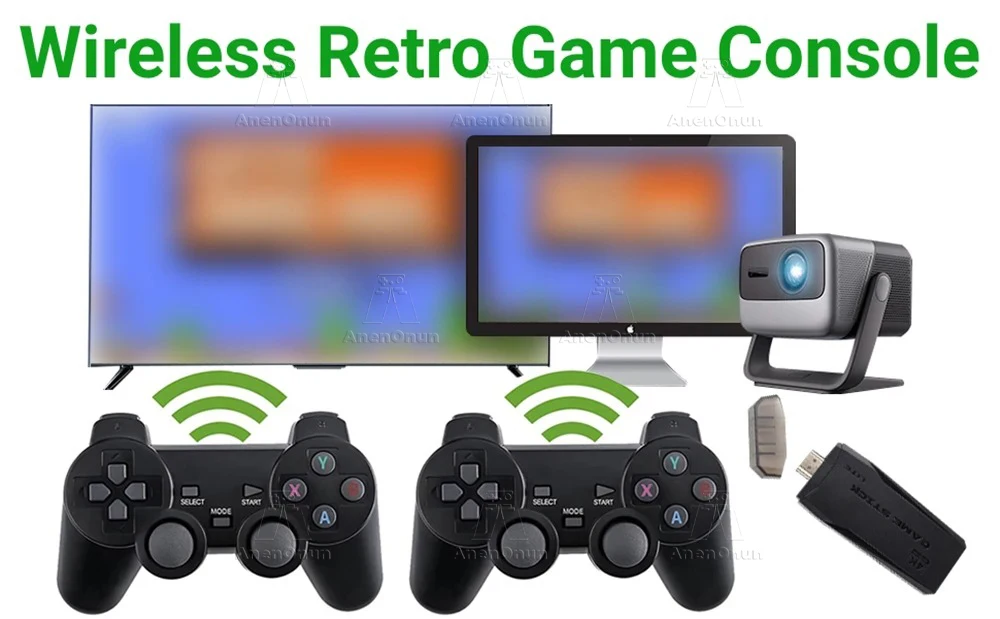 Esta consola de juegos retro con 2 controladores inalámbricos, cuidadosamente diseñada, motor de vibración incorporado, ergonómico. (2 Controladores inalámbricos necesitan instalar 4 pilas AAA, no incluidas en el paquete).