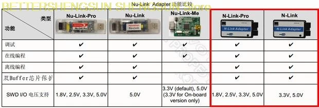 2) N-Link solo admite chips de voltaje de 3,3/5V, mientras que N-Link-Pro admite chips de voltaje de 1,8/2,5/3,3/5V.