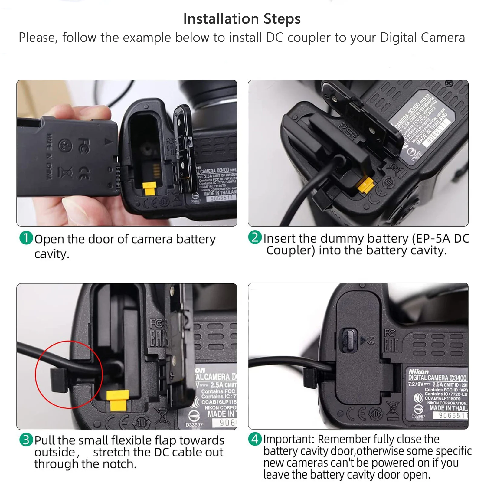 Adaptador de fuente de alimentación de CA EP-5A, cargador de batería simulada con acoplador de CC que reemplaza la batería EN-EL14