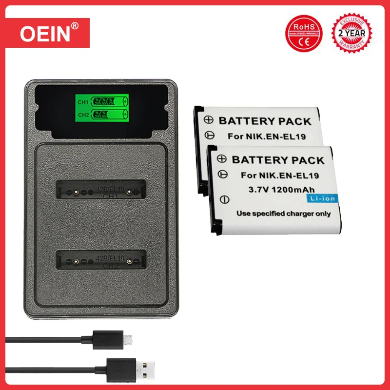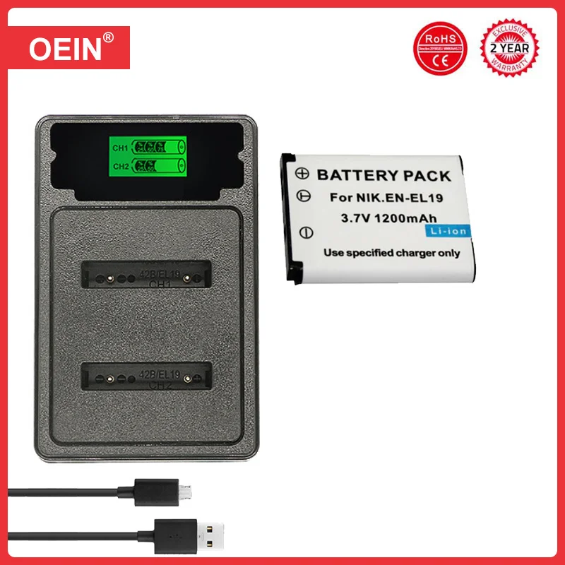 Batería de iones de litio ENEL19 EL19 + cargador Dual LED para Nikon Coolpix S32 S33 S100 S2500 S2750 S3100 S3200 S3300 S3400 S3500, 1/2/2