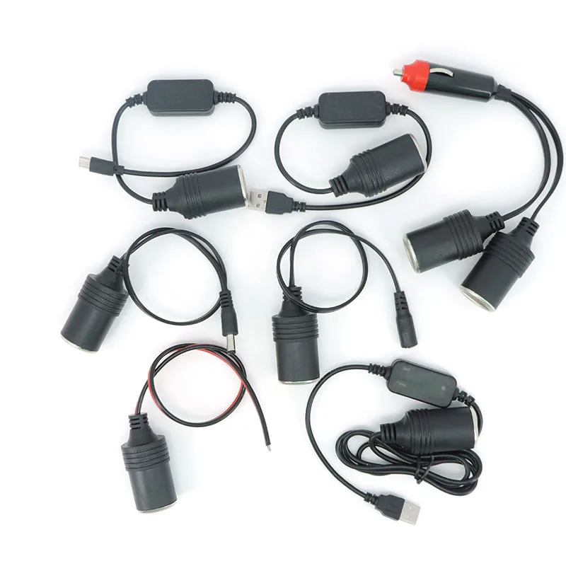 Encendedor de cigarrillos de doble coche de 12v CC macho hembra a CC 5,5x2,1 USB tipo c macho hembra conector de 5v adaptador de cargador de enchufe de encendedor
