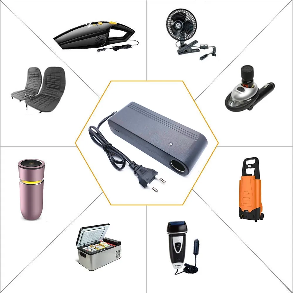 Equipo aplicable: refrigerador de automóvil, aspiradora de automóvil, bomba de aire de vehículo, hervidor de agua de automóvil, audio de automóvil, etc., todo tipo de equipos de vehículo, lleve la electrónica del automóvil a casa.