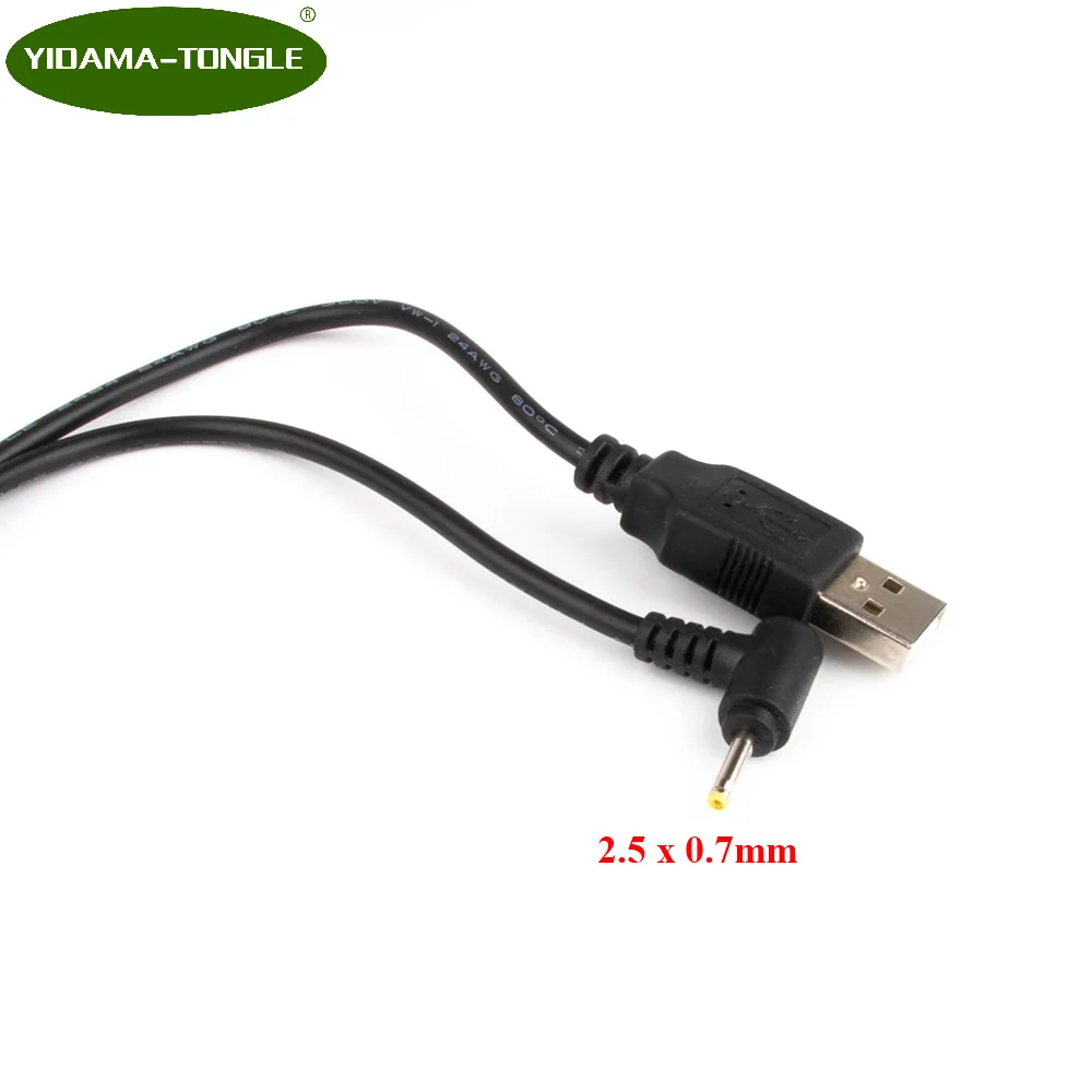 Comprar Enchufe adaptador de corriente CC, convertidor USB a 2,5x0,7mm/DC 2507, 2,5x0,7mm, Conector de ángulo recto en forma de L negro con cable conector