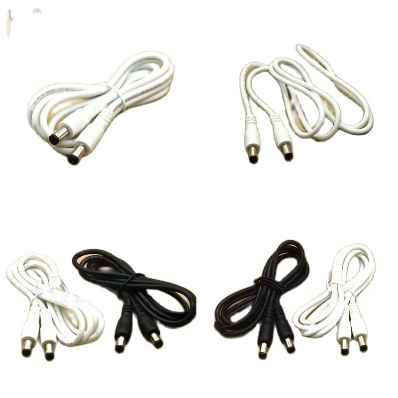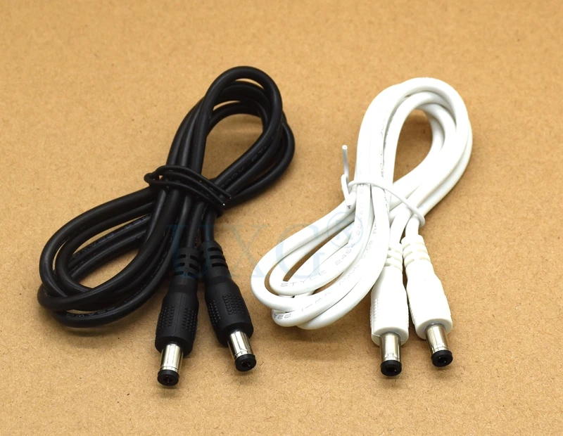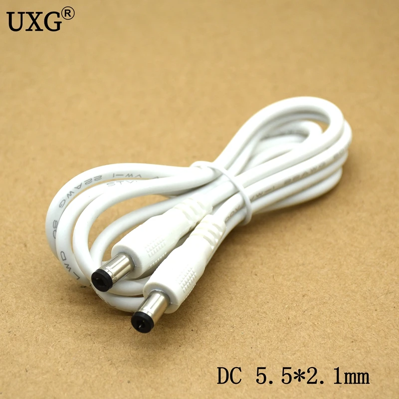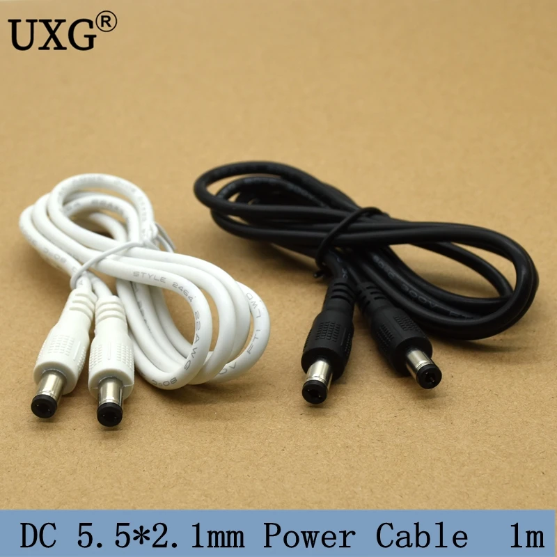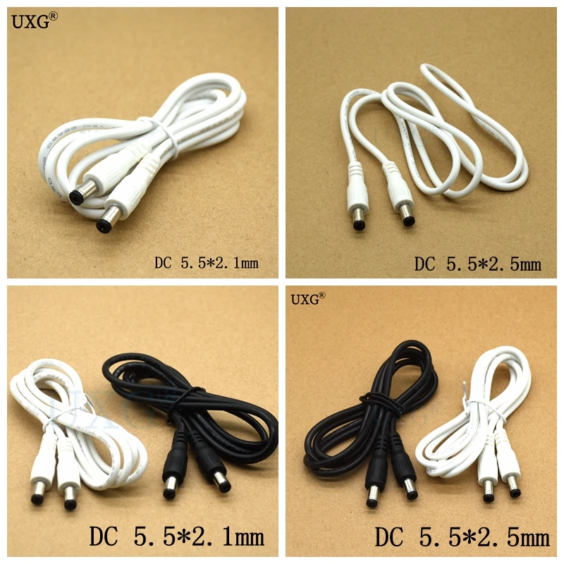 DC 5,5*2,5mm 5,5*2,1mm enchufe adaptador de corriente 5,5 2,5mm macho a 5,5*2,1mm macho Forma negra Jack con Cable conector 1m blanco