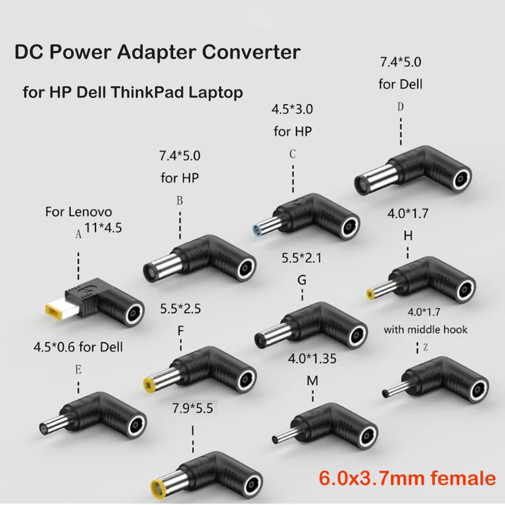 Nota: Verifique dos veces el tamaño del conector antes de comprarlo. Su adaptador hembra (con enchufe de 6,0*3,7 mm) debería tener suficiente potencia para soportar su computadora portátil.