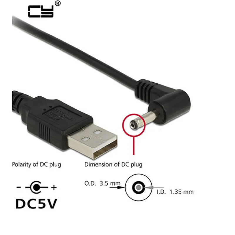 Comprar Enchufe de alimentación CC, conversión USB a 3,5x1,35mm/CC 3,5x1,35mm, conector de ángulo recto en forma de L negro con Cable conector de 1m, 3 pies y 2m