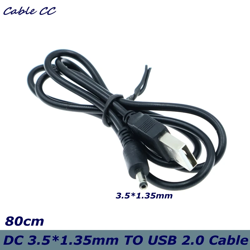 Comprar Enchufe de alimentación CC USB 2,0, convertidor a 3,5x1,35mm/CC 3,5x1,35, conector negro para altavoces pequeños, cable de alimentación de ventilador pequeño de 0,8 m
