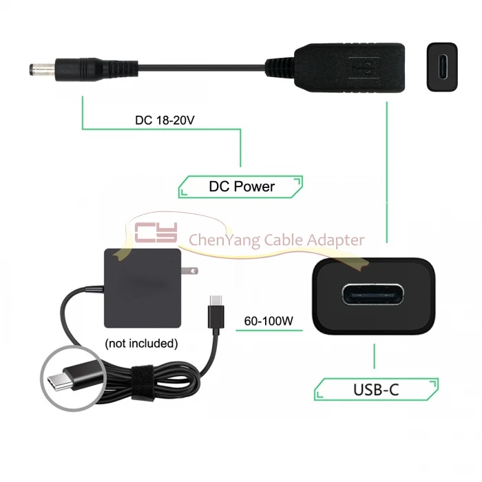 Comprar Enchufe de alimentación DC 20V 5,5 2,5mm y 2,1mm, disparador emulador PD a USB 3,1 tipo C, Cable de carga de USB-C para ordenador portátil