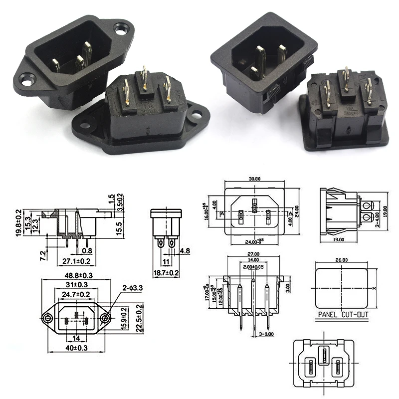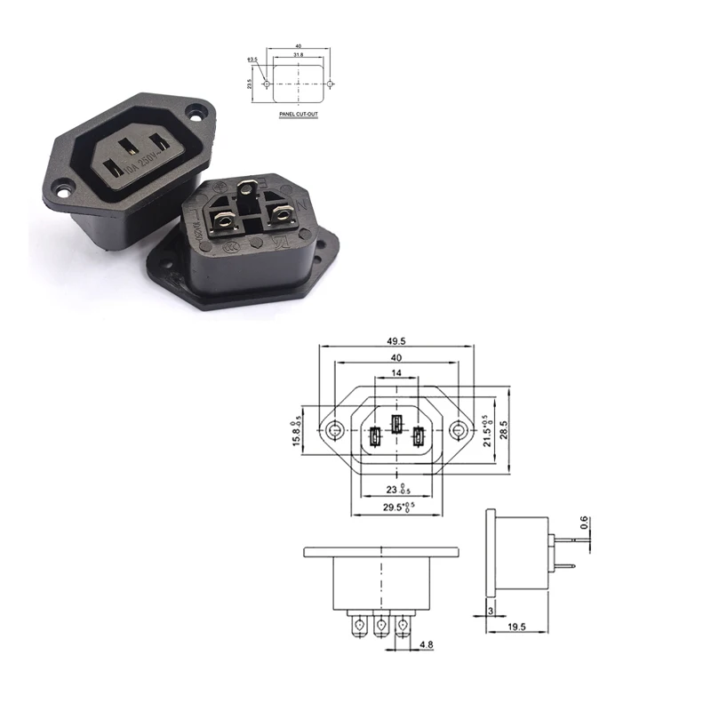 El perfil del orificio necesario no es rectangular, sino con lengüetas; no se sujeta bien en una superficie gruesa a menos que el borde esté afilado, la fundición no es precisa (el enchufe se inserta con gran esfuerzo y chirría contra el plástico), así que tuve que colocar algunas cuñas debajo de las lengüetas para evitar que el enchufe se salga con el cable.