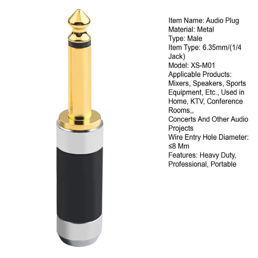 Enchufe de Audio de 1/4 pulgadas, enchufe de Audio de 6,35mm de alta calidad para mezcladores de DJ, amplificadores, micrófonos, conector de Metal resistente
