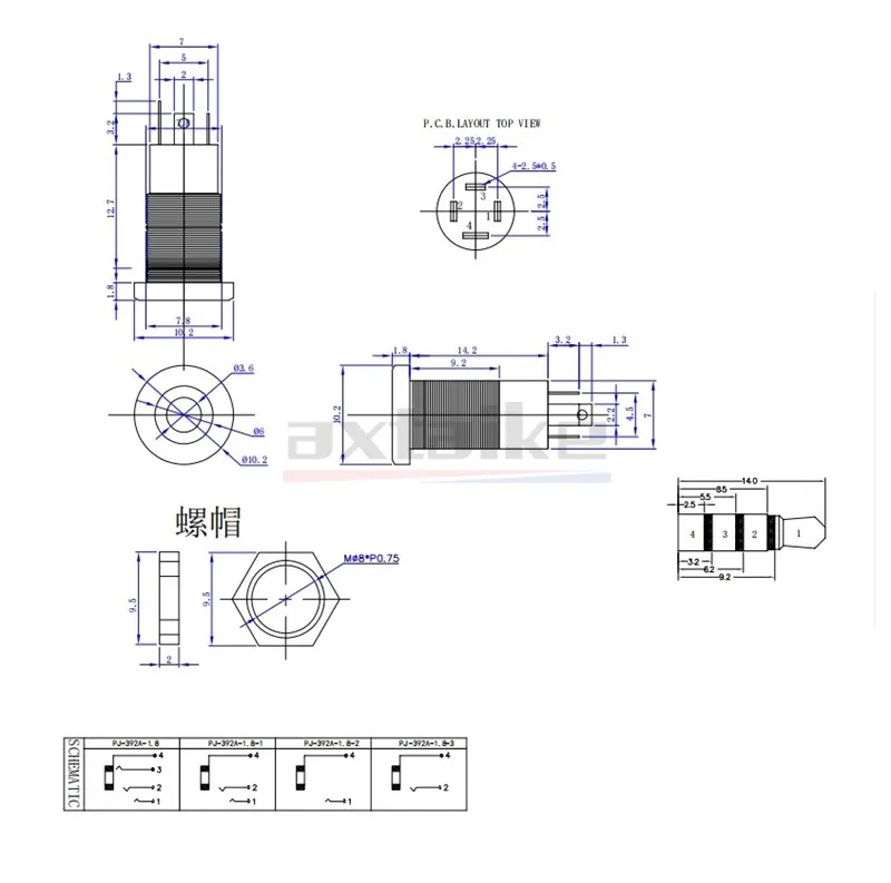 Enchufe de Audio de 3 polos, 10 piezas, 3 pines, 4 pines, 3,5 MM, montaje en Panel de soldadura estéreo negro, dorado con tuercas PJ392A, reproductor MP3 y MP4