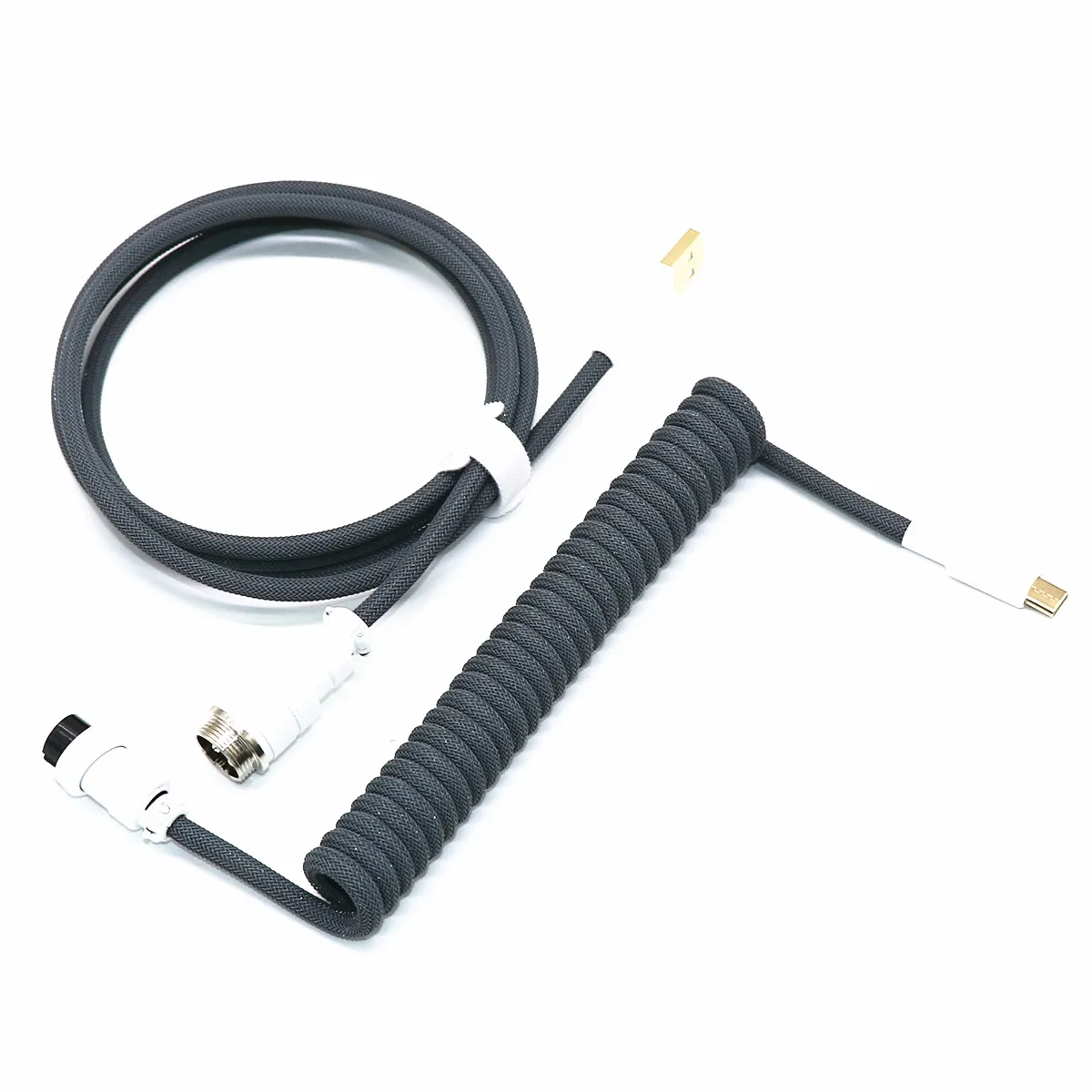 Black White GX12 Aviator With Black White Silver Ring Socket Docking 4 Core 4Pin for Mechanical Keyboard Coiled USB Type C Cable