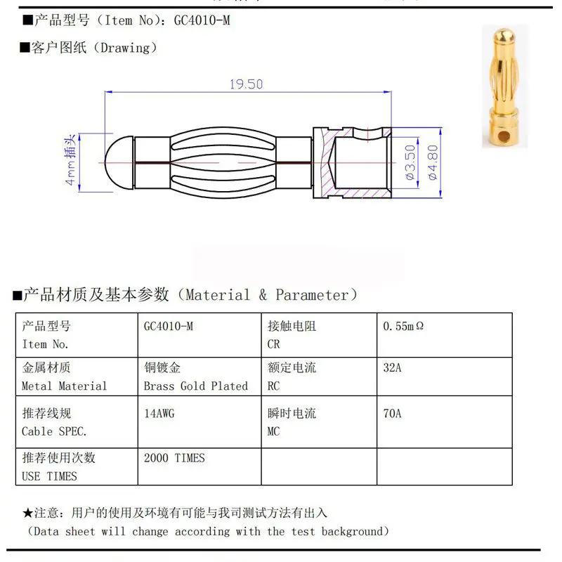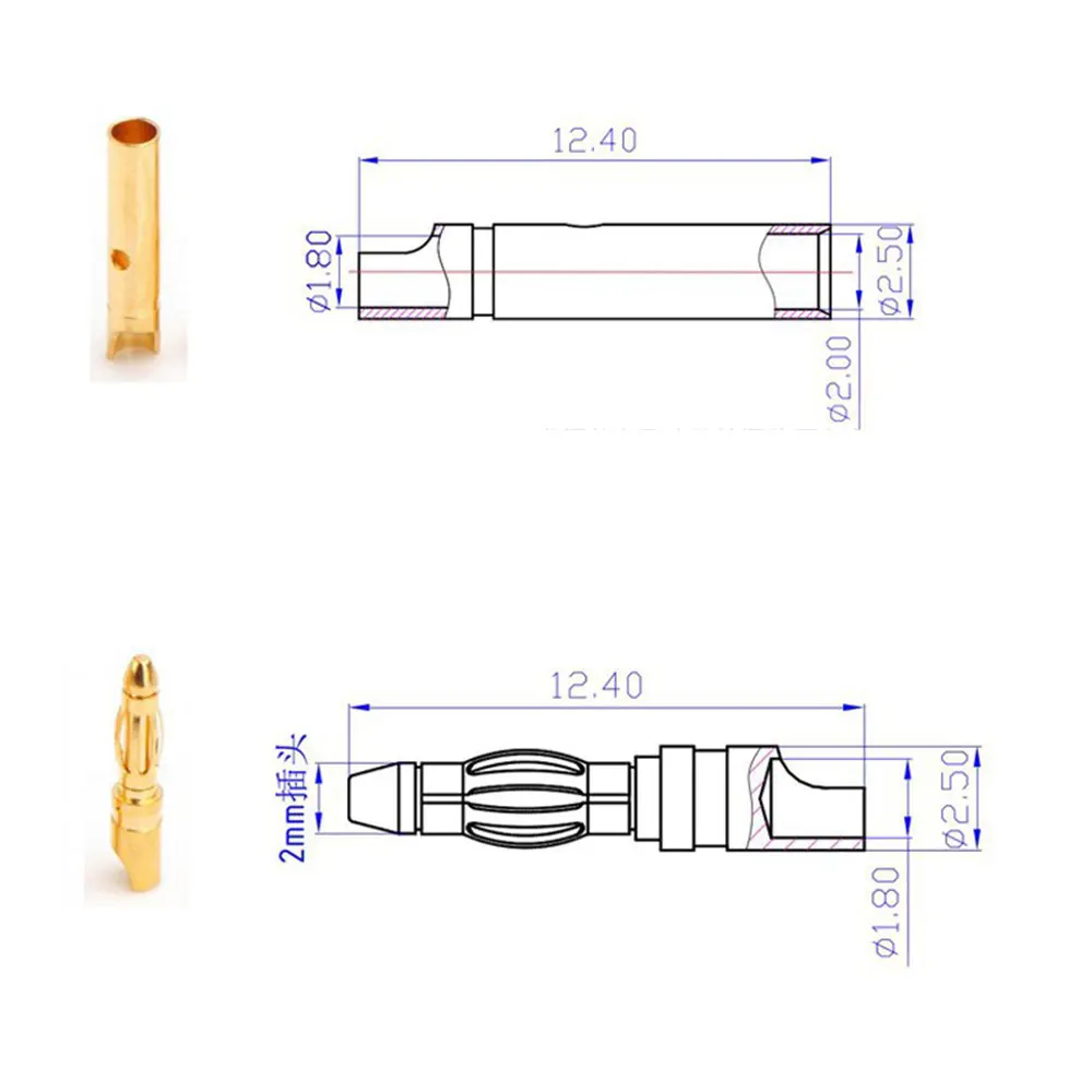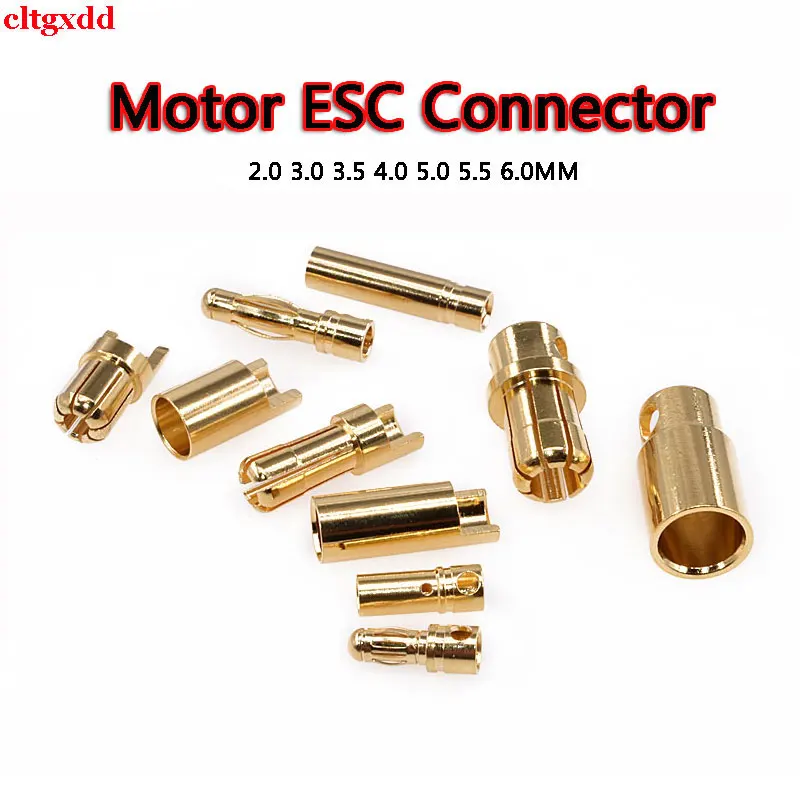Comprar Enchufe Banana de bala chapado en oro, 10 piezas, 2mm, 3mm, 3,5mm, 4mm, 5mm, 5,5mm, 6mm, batería RC, alta calidad