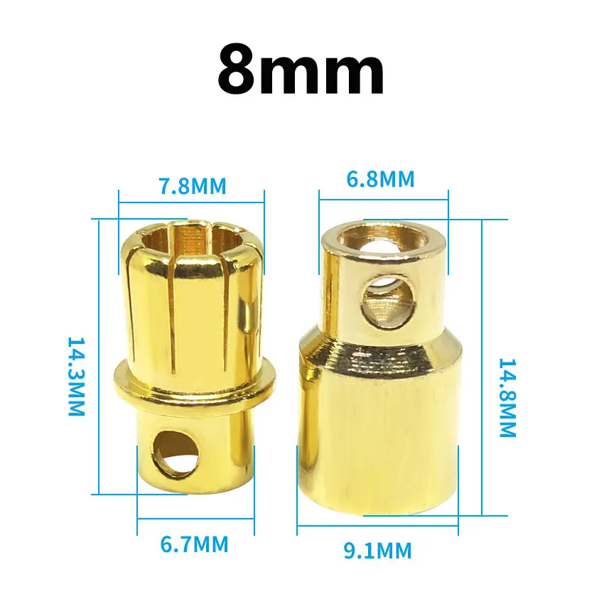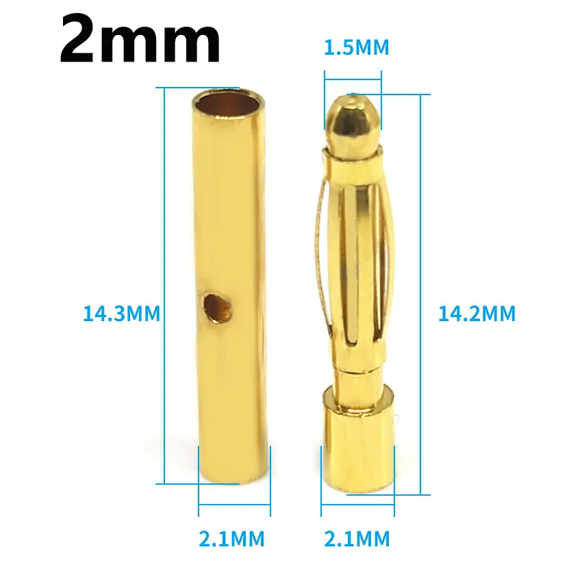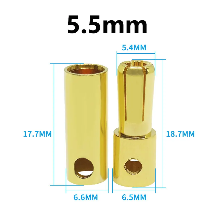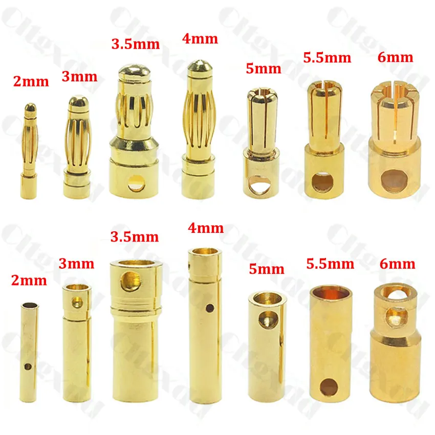 Comprar Enchufe Banana de bala chapado en oro, conector Banana de bala macho y hembra de alta calidad, batería RC de 10x2mm, 3mm, 3,5mm, 4mm, 5mm, 5,5mm, 6mm