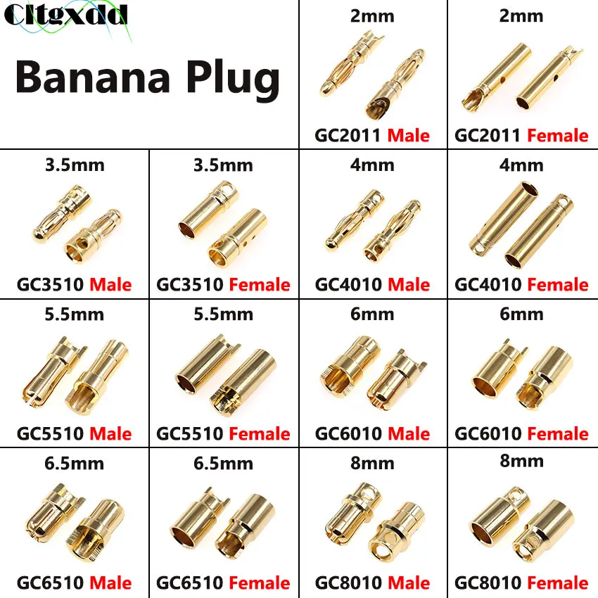 Comprar Enchufe Banana chapado en oro de cobre puro, conector macho y hembra de ajuste eléctrico para Motor de 1 piezas, modelo de avión, 2/3, 5/4/5, 5/6/6, 5/8mm
