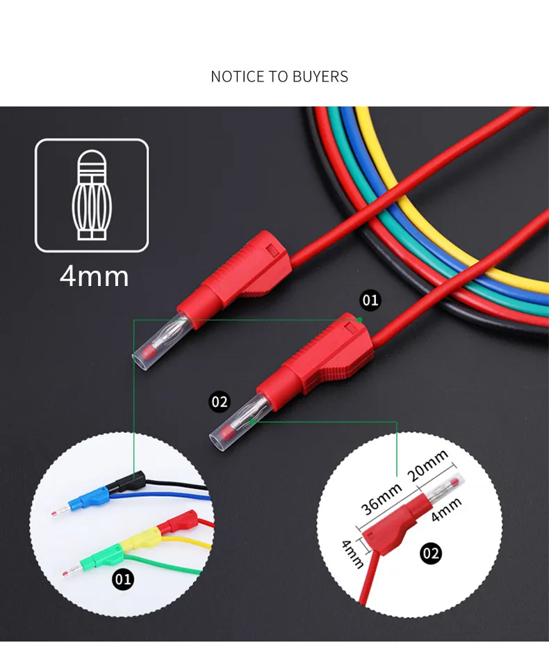 Comprar Enchufe Banana de seguridad de 4mm, línea de prueba de silicona suave, envoltura transparente de alto voltaje, cableado corto, enchufe de multímetro retráctil, 1 unidad