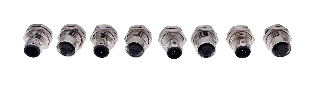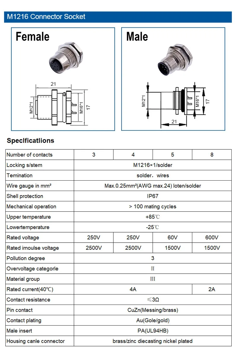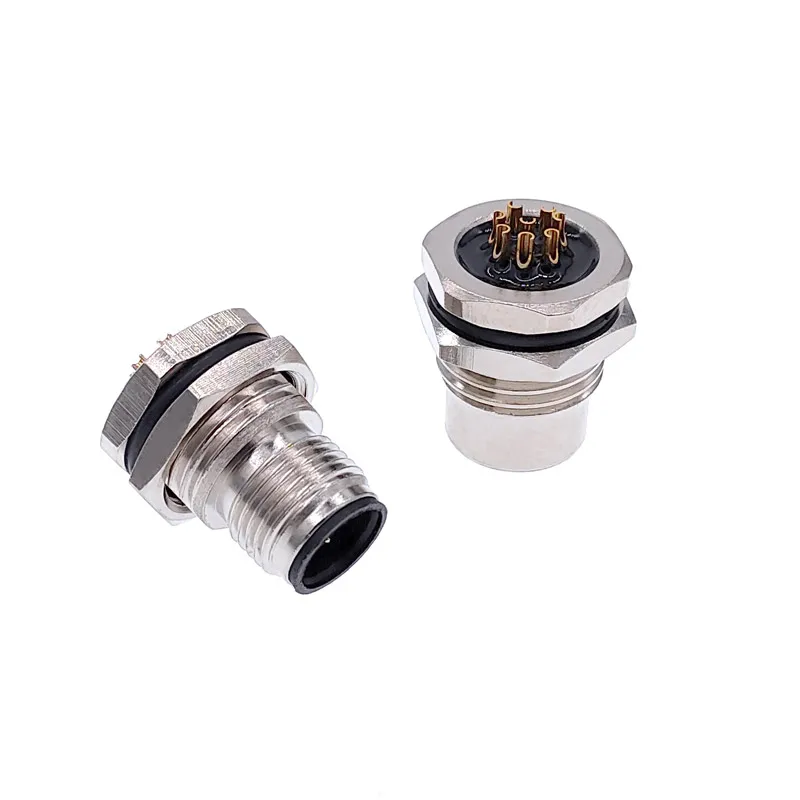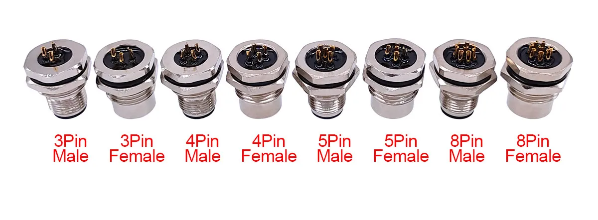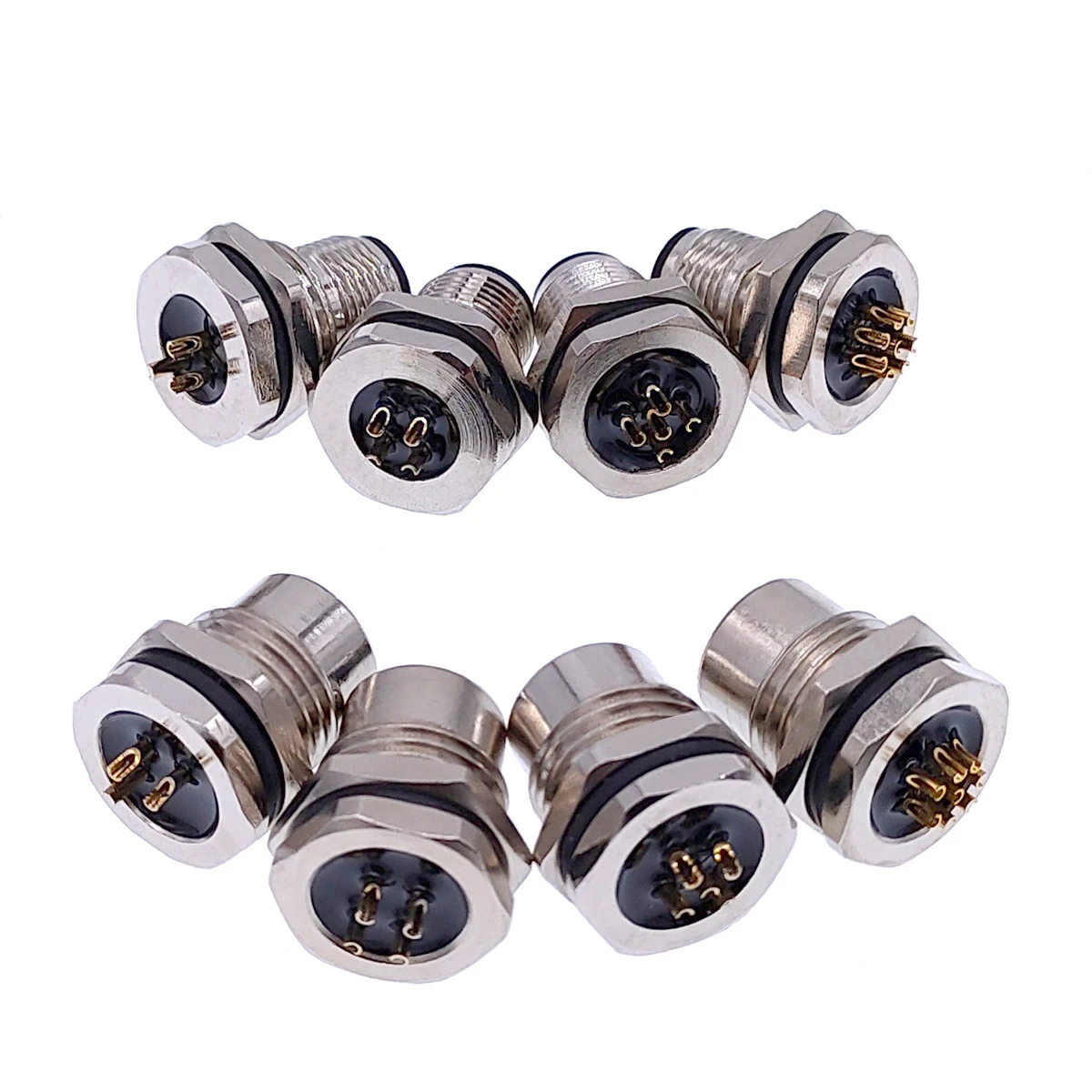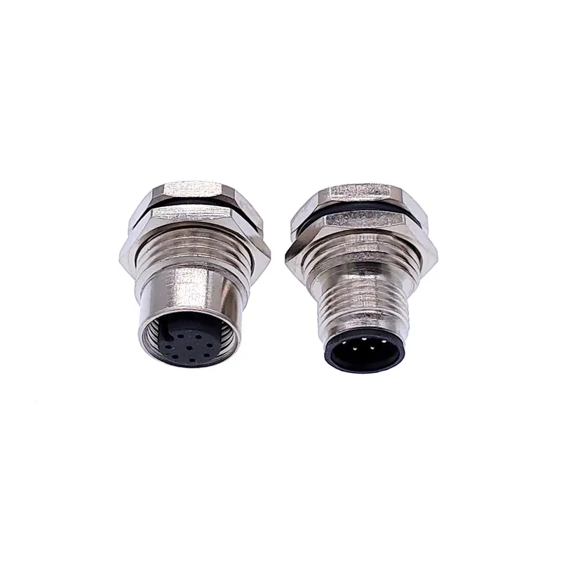 Enchufe de brida de tuerca delantera, tornillo roscado macho y hembra M1216, Conector de sensor impermeable, orificio de montaje de 16mm, 3 pines, 4 pines, 5 pines, 8 pines, M12