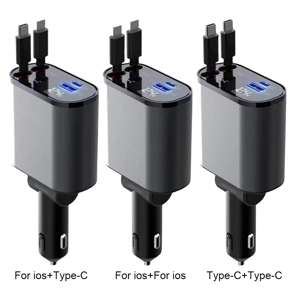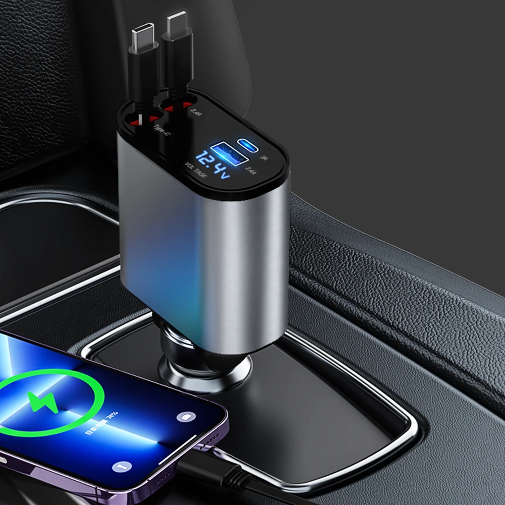 Cargador rápido USB 4 en 1, carga súper rápida para Apple tipo C, cargador USB, pantalla Digital, adaptador para encendedor de cigarrillos PD QC3.0