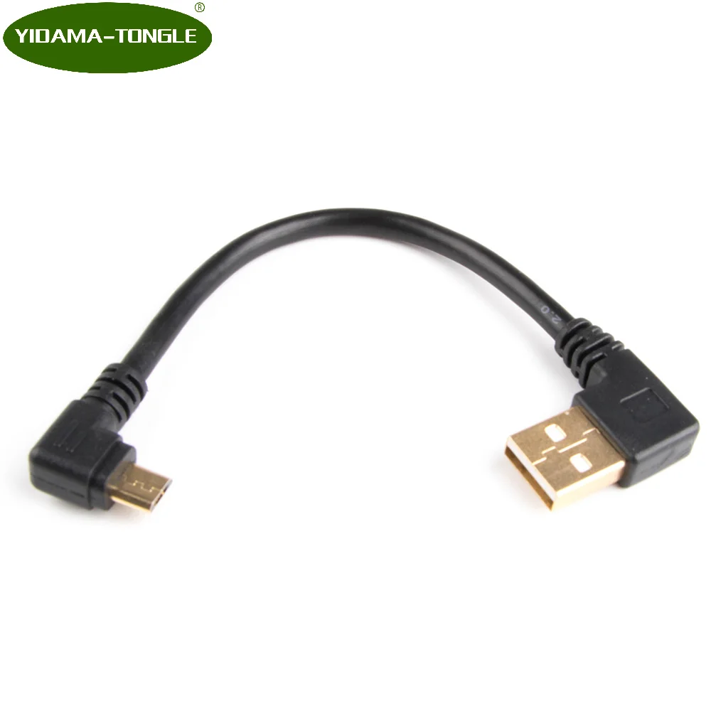 Comprar Enchufe chapado en oro corto de 90 grados, ángulo izquierdo, USB A macho A Micro USB macho, cable de alimentación de datos de cargador de ángulo recto para teléfono android
